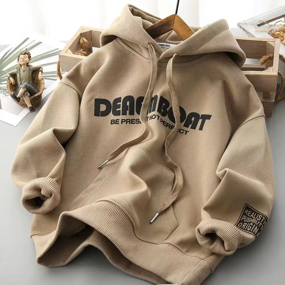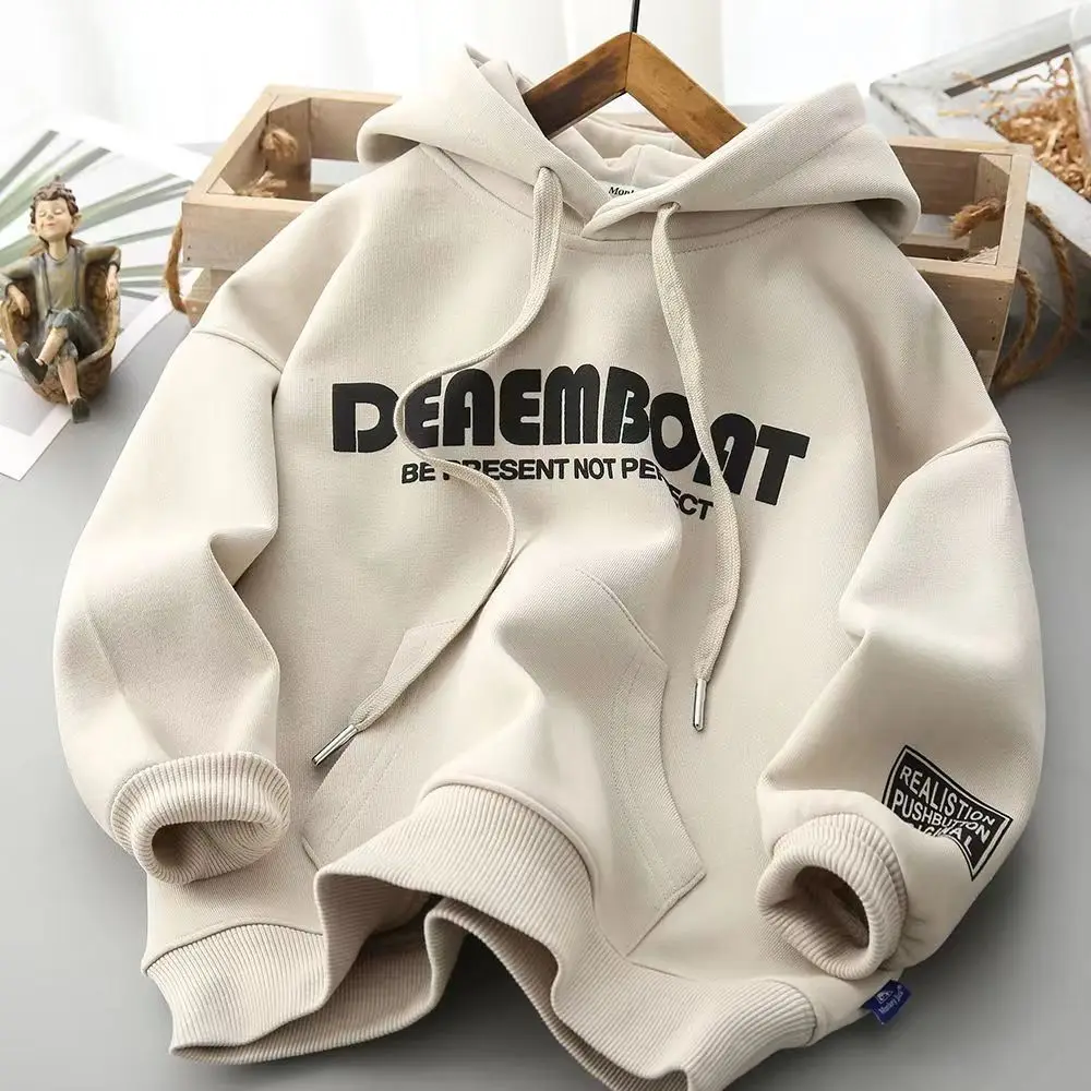 Детская одежда для мальчиков на весну 2023 Новинка толстовка с капюшоном с буквенным принтом для больших мальчиков Повседневный универсальный топ для детей