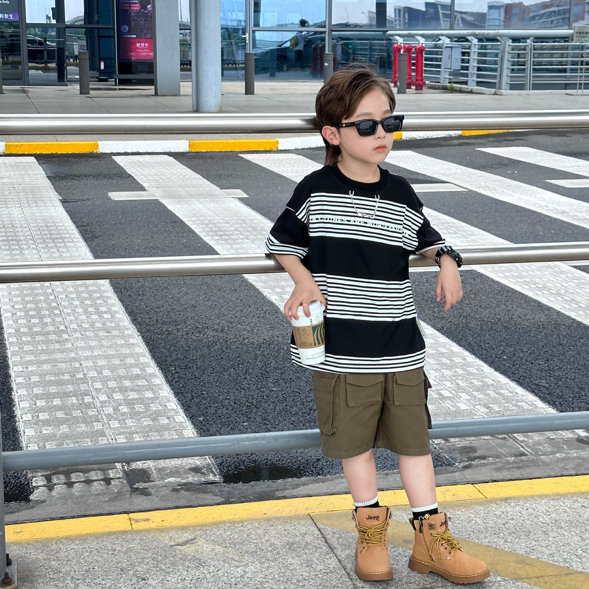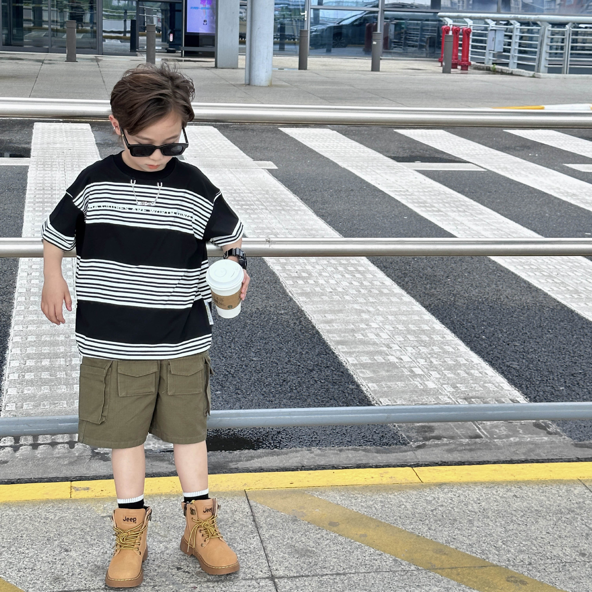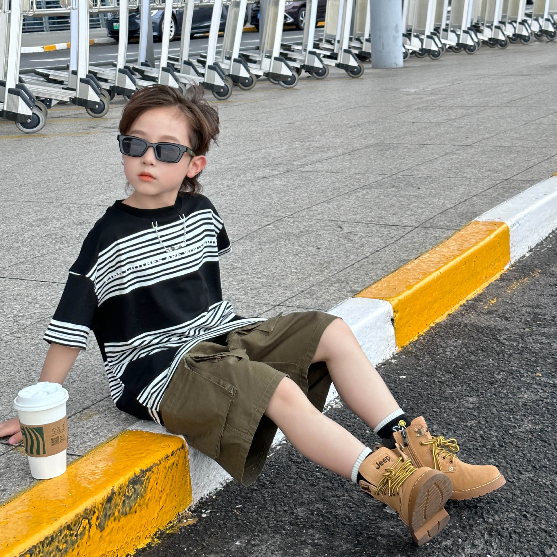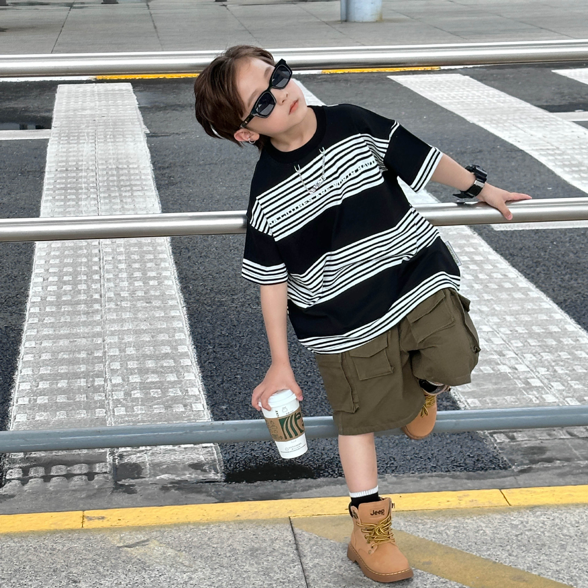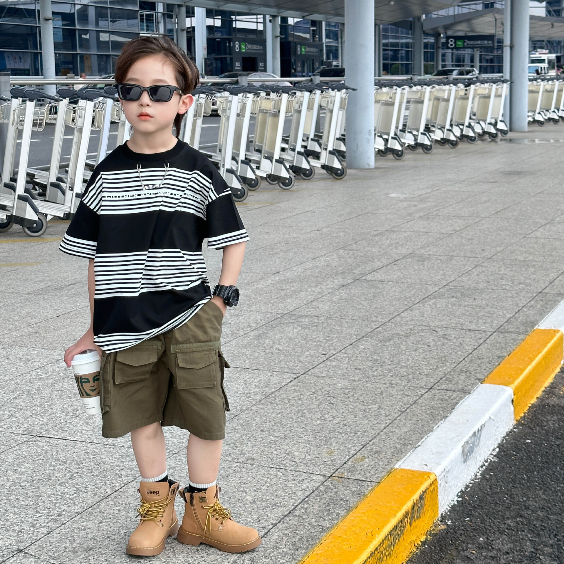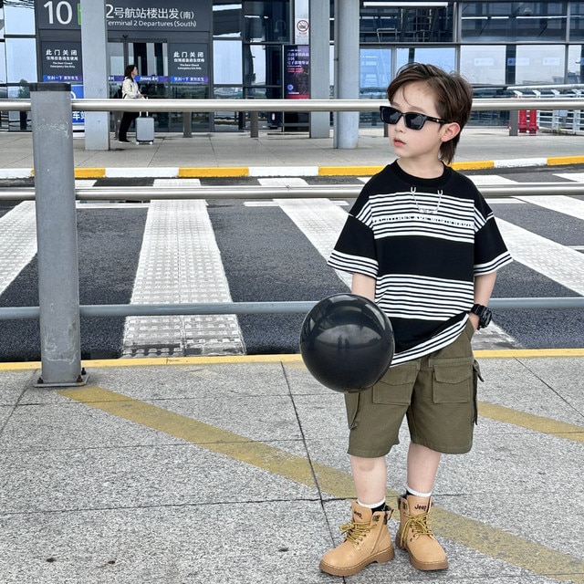 Детская одежда для мальчиков с коротким рукавом Новинка весна-лето 2023 модная повседневная детская футболка в полоску в простом стиле свободная с коротким рукавом