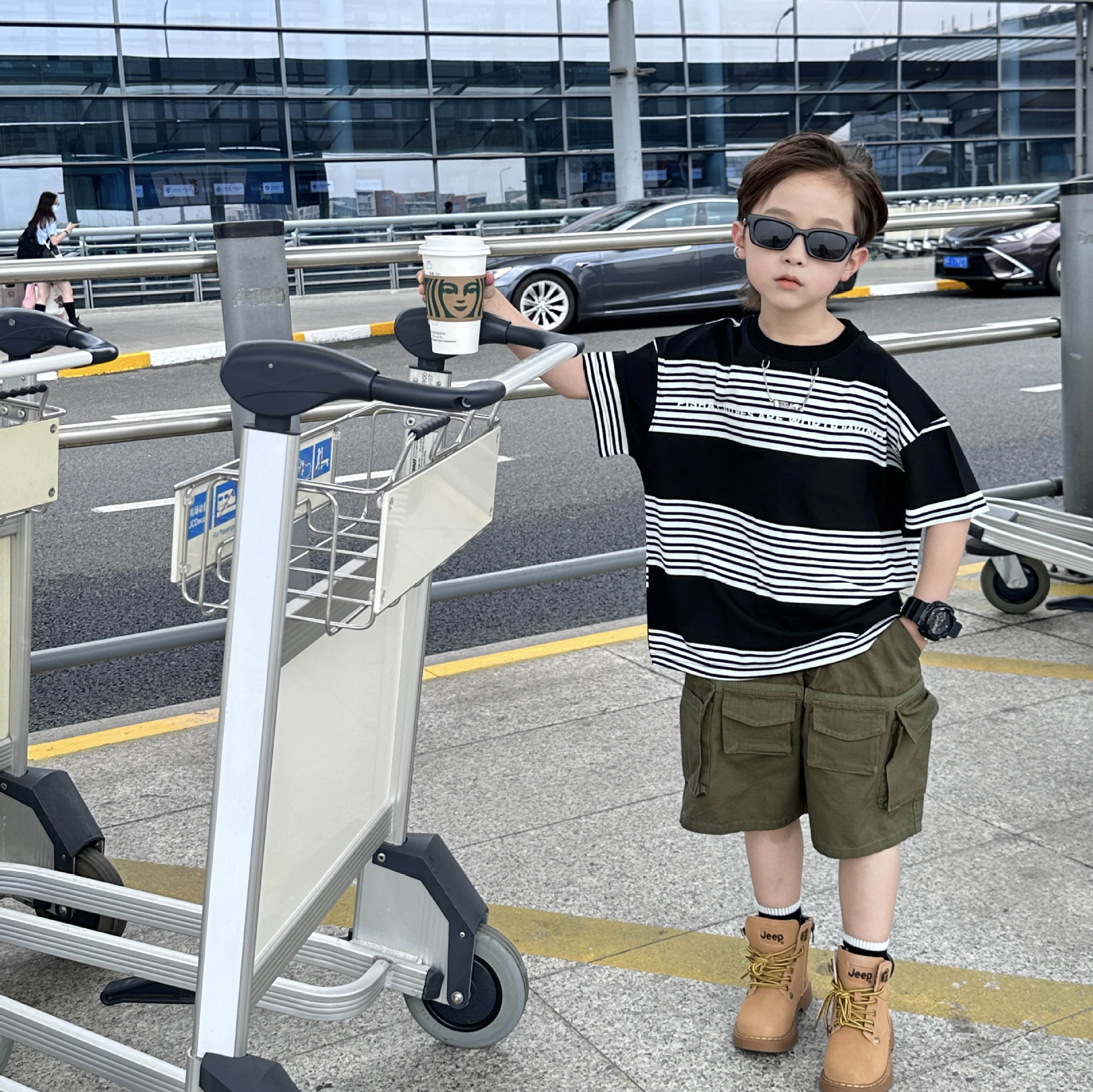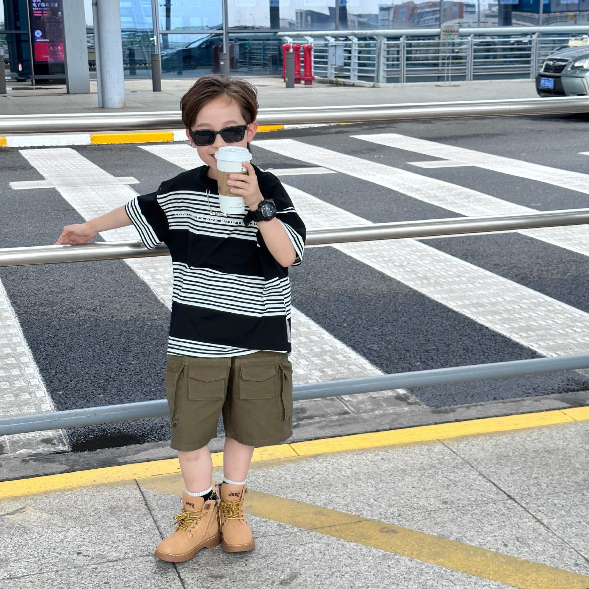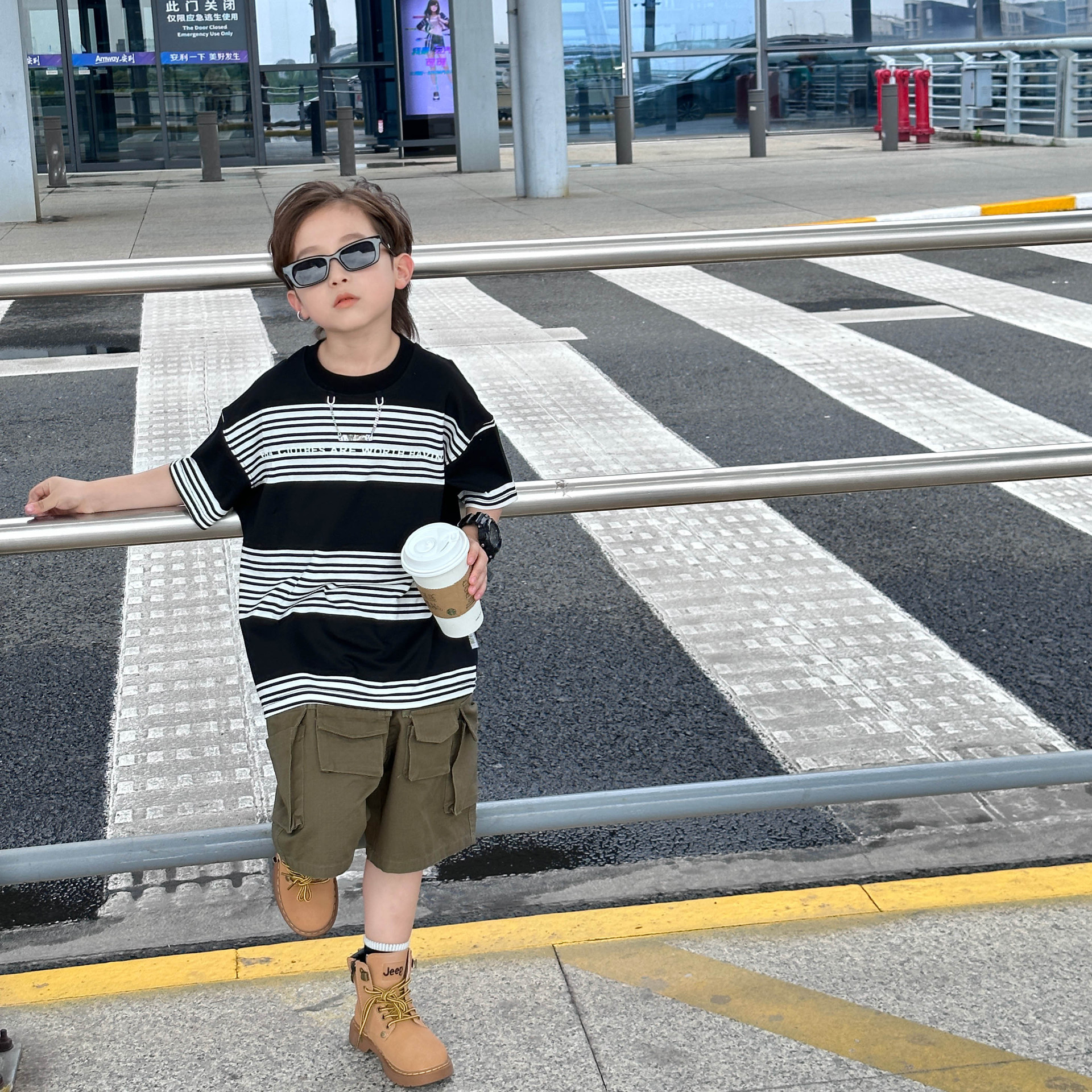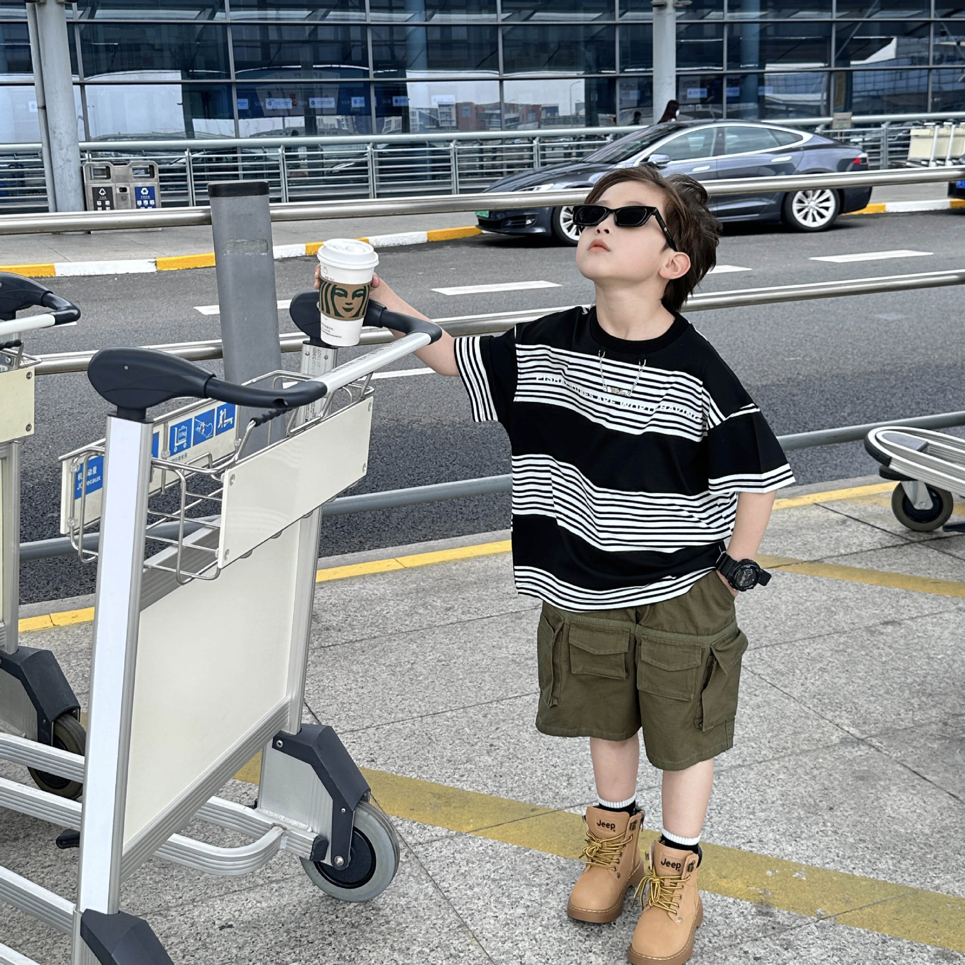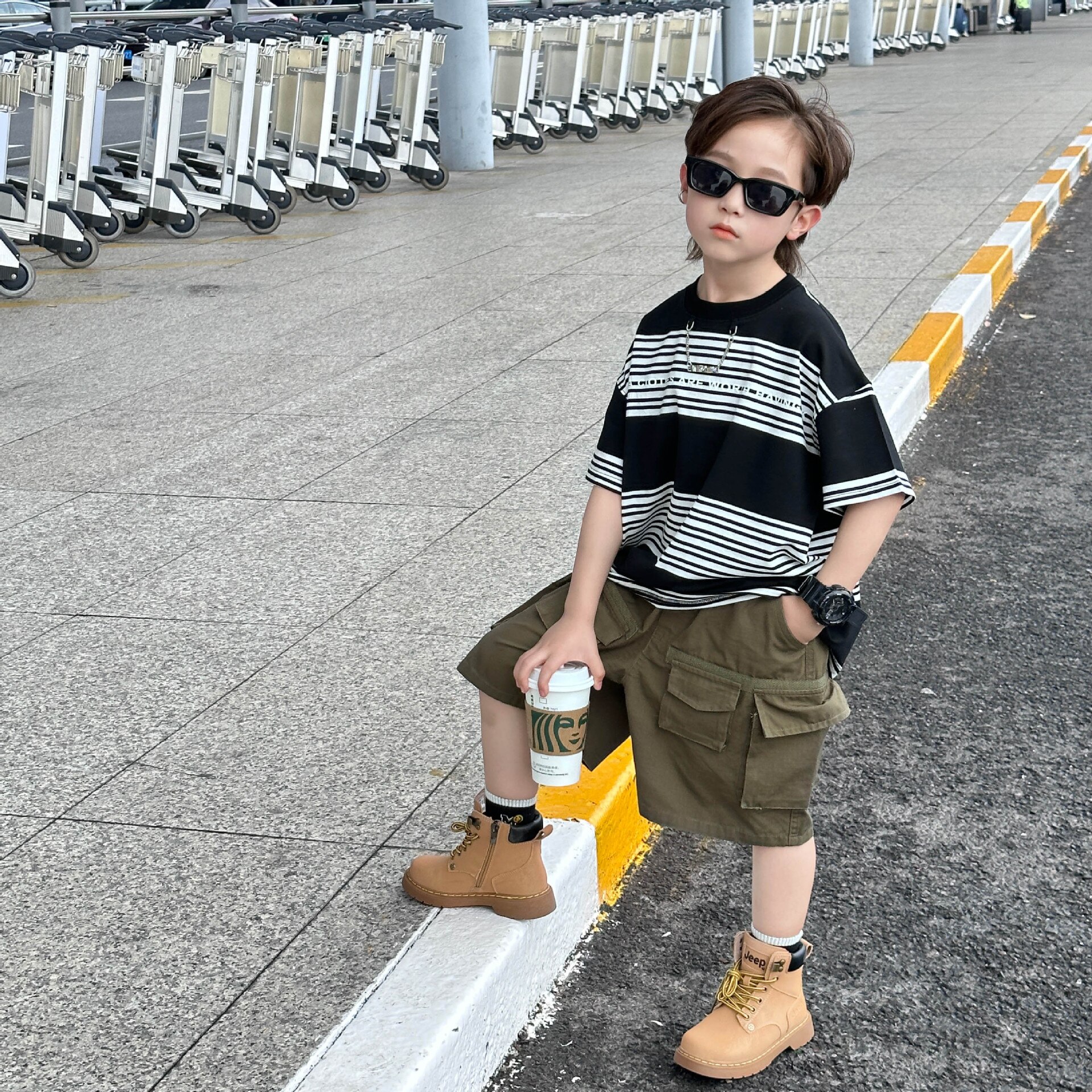 Детская одежда для мальчиков с коротким рукавом Новинка весна-лето 2023 модная повседневная детская футболка в полоску в простом стиле свободная с коротким рукавом