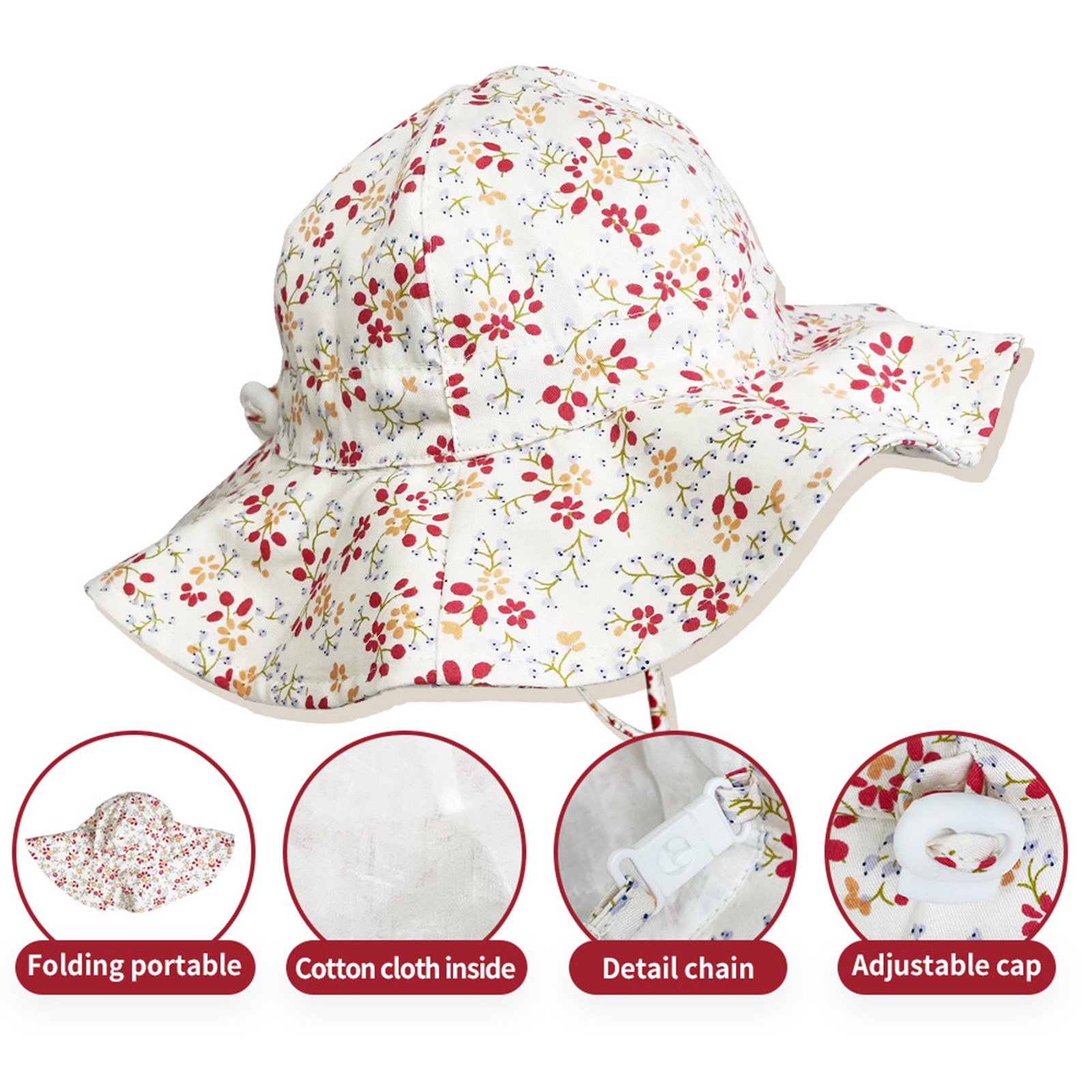 • Эта эластичная Регулировочная Веревка на задней части шляпы-ведра для малышей позволяет легко отрегулировать окружность головы, которая подходит для окружности головы большинства младенцев.