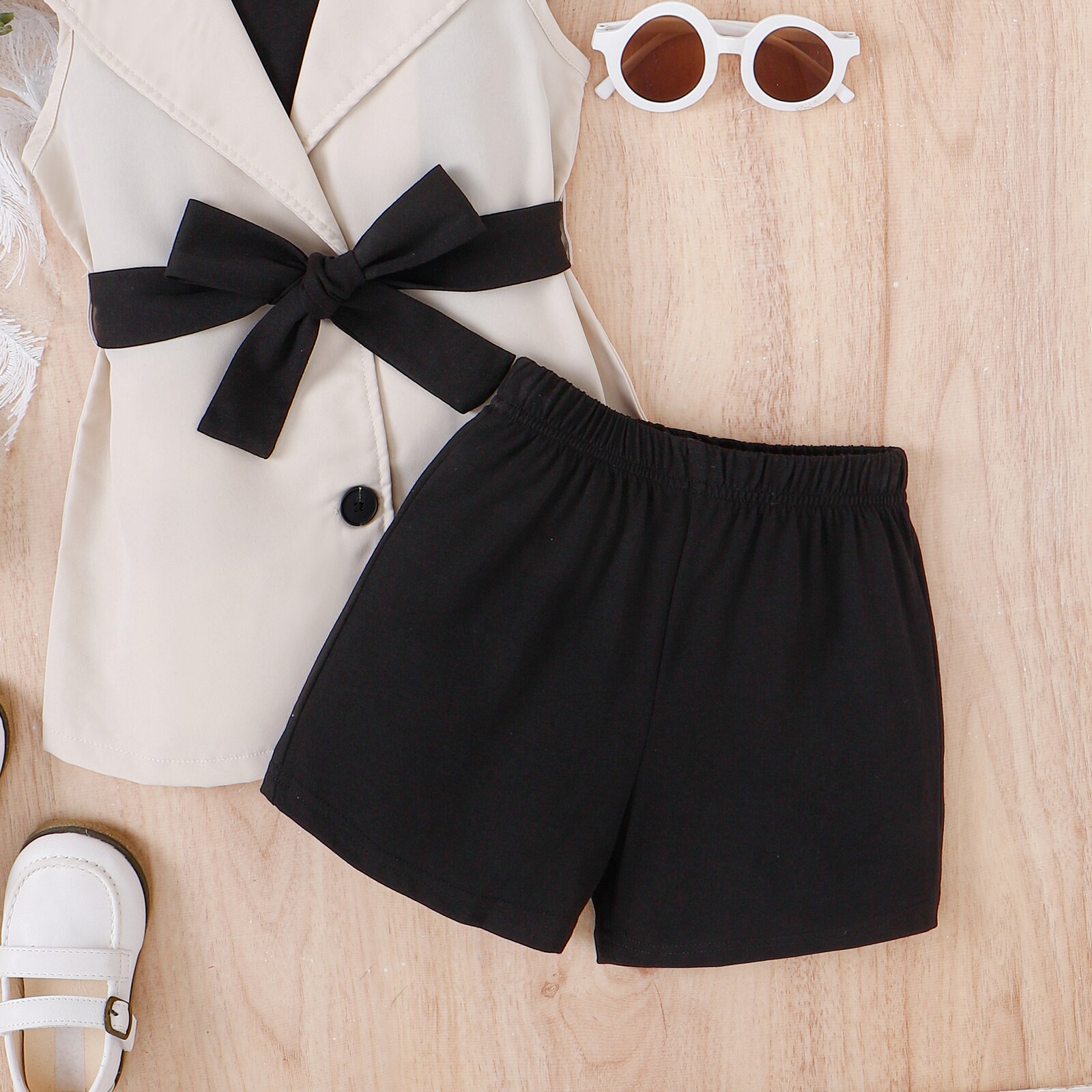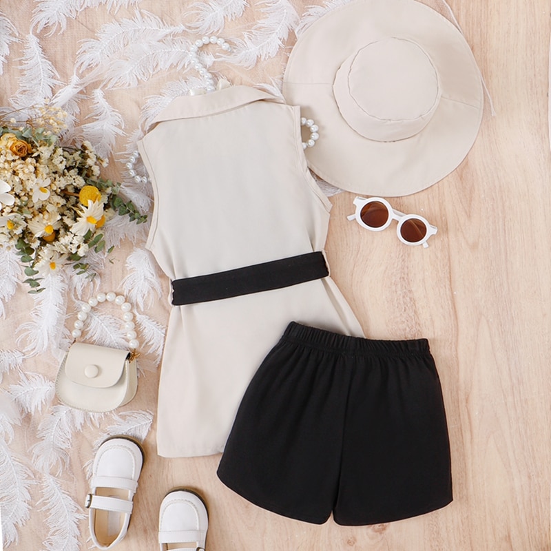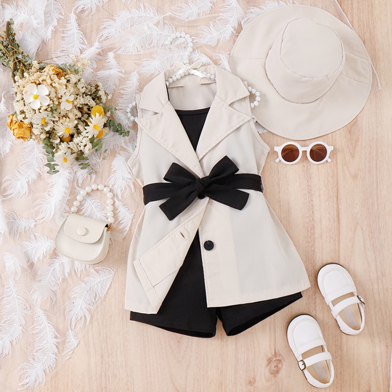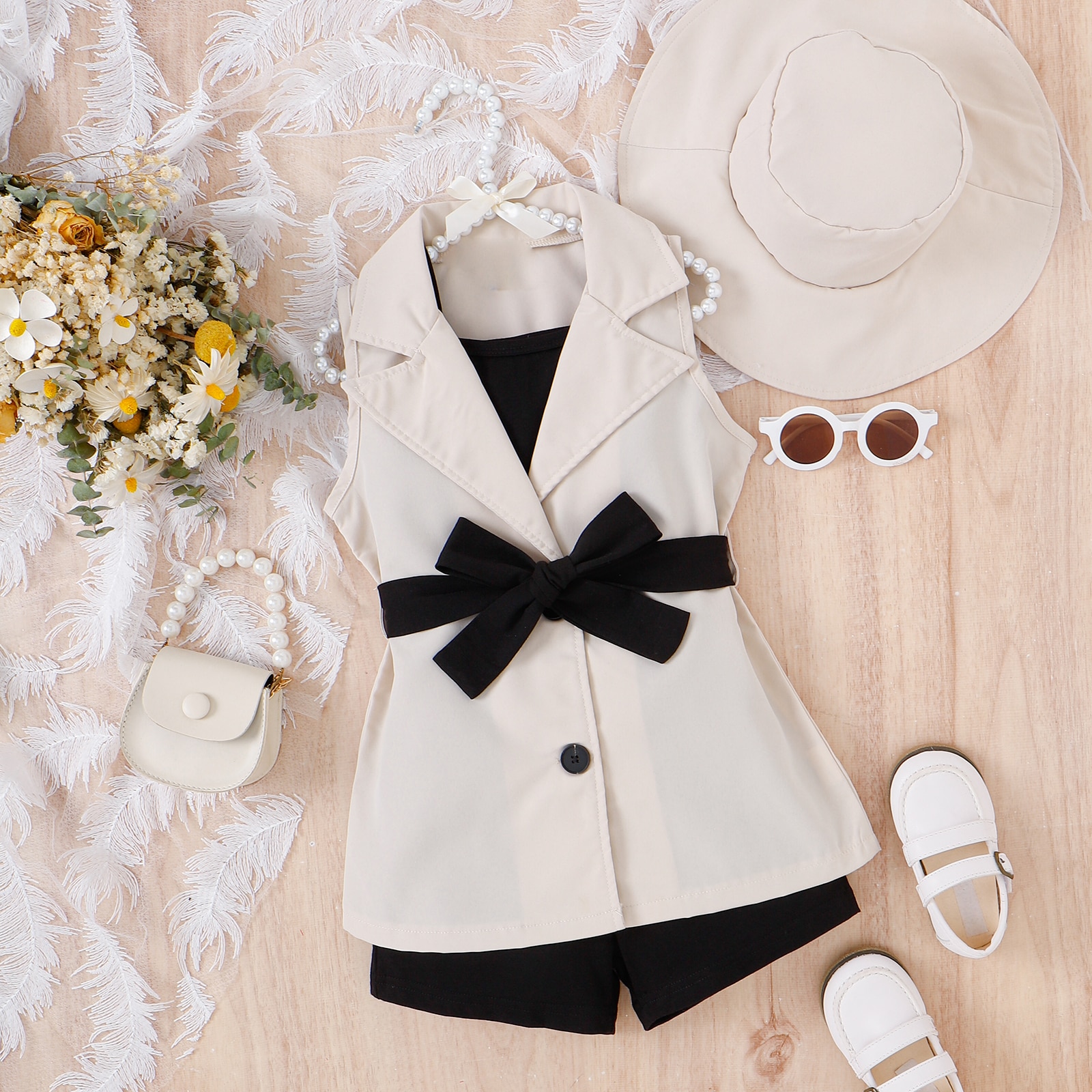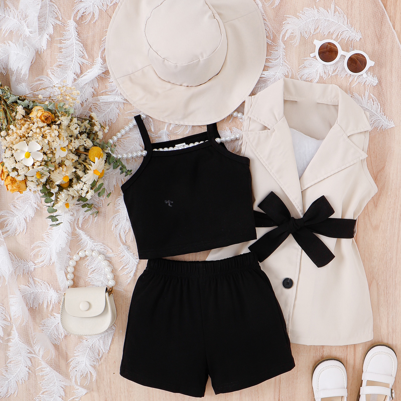 Детская одежда для маленьких девочек, укороченный топ на бретельках + шорты + жилет с лацканами, топы с поясом + шапочка, элегантные комплекты одежды для девочек