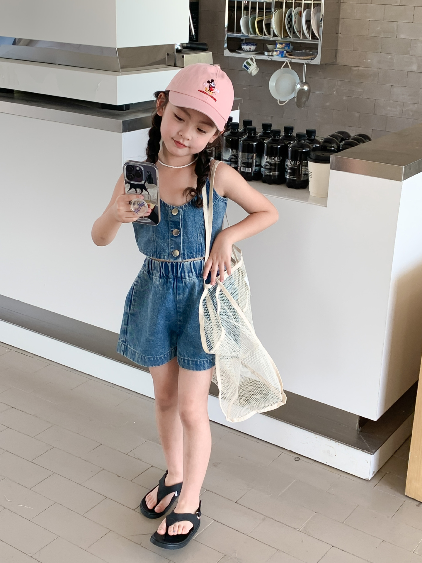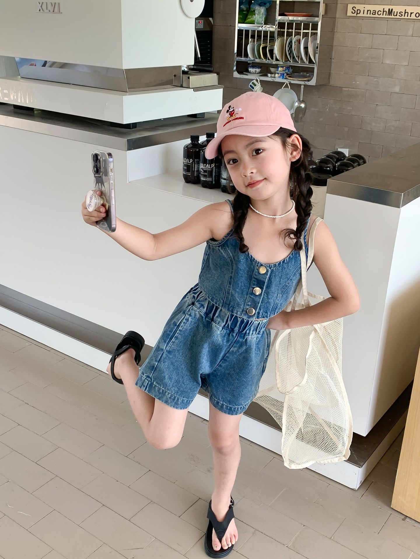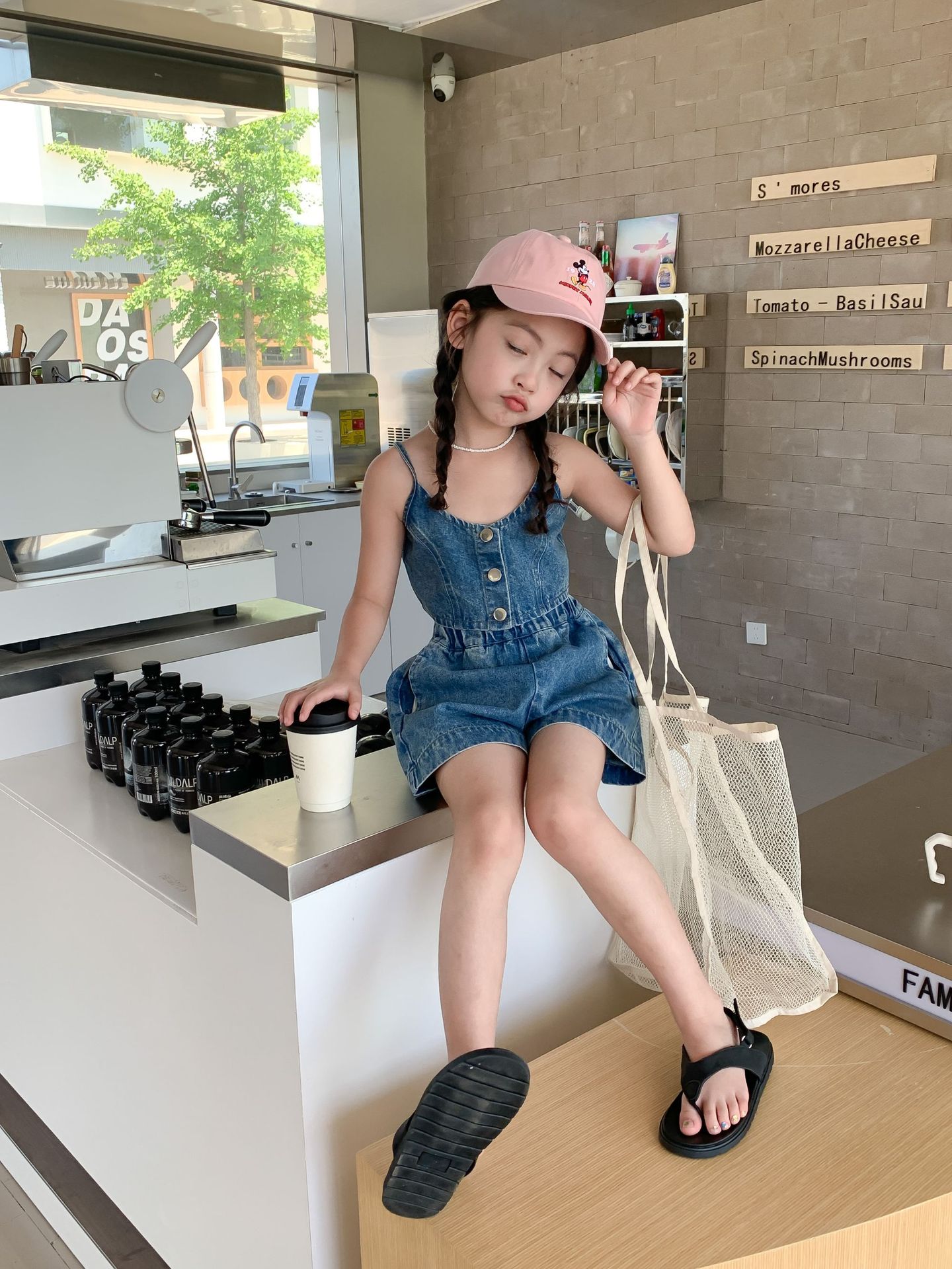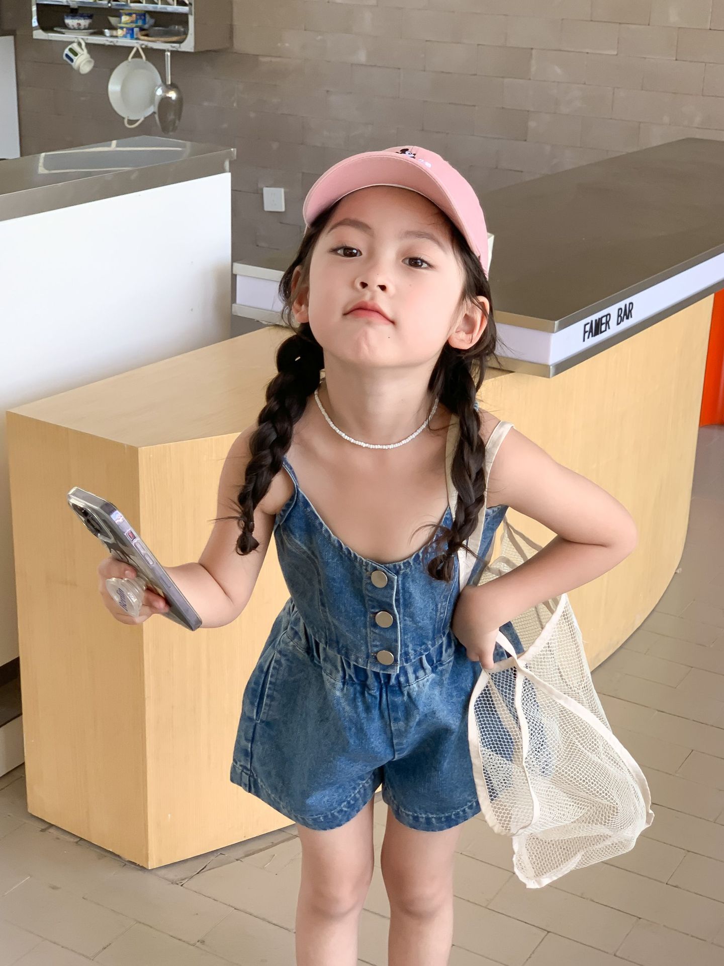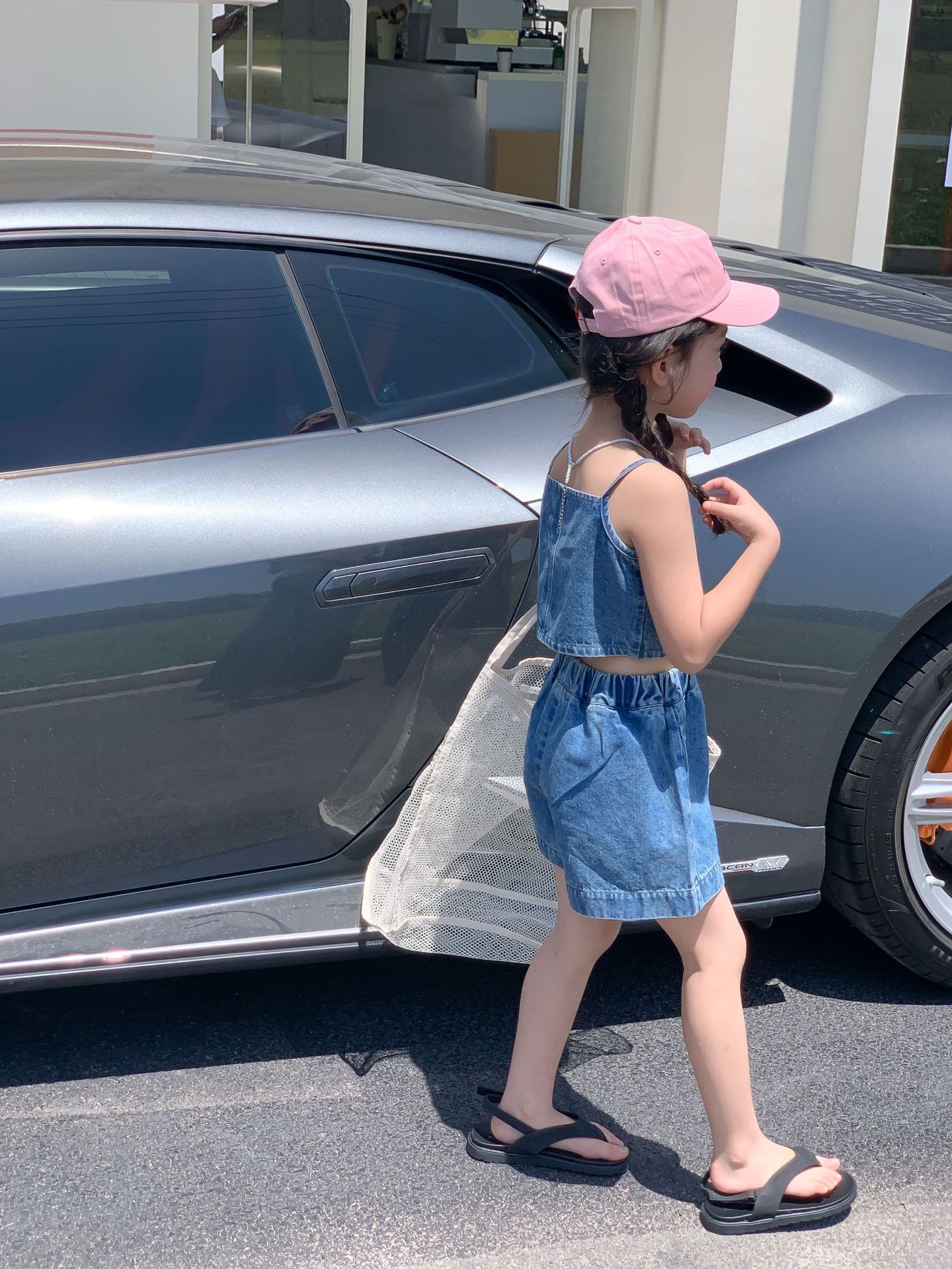 Детская одежда, костюм для девочек в Корейском стиле, лето 2023, модный джинсовый жилет на бретелях и шорты в Корейском стиле, комплект из двух предметов