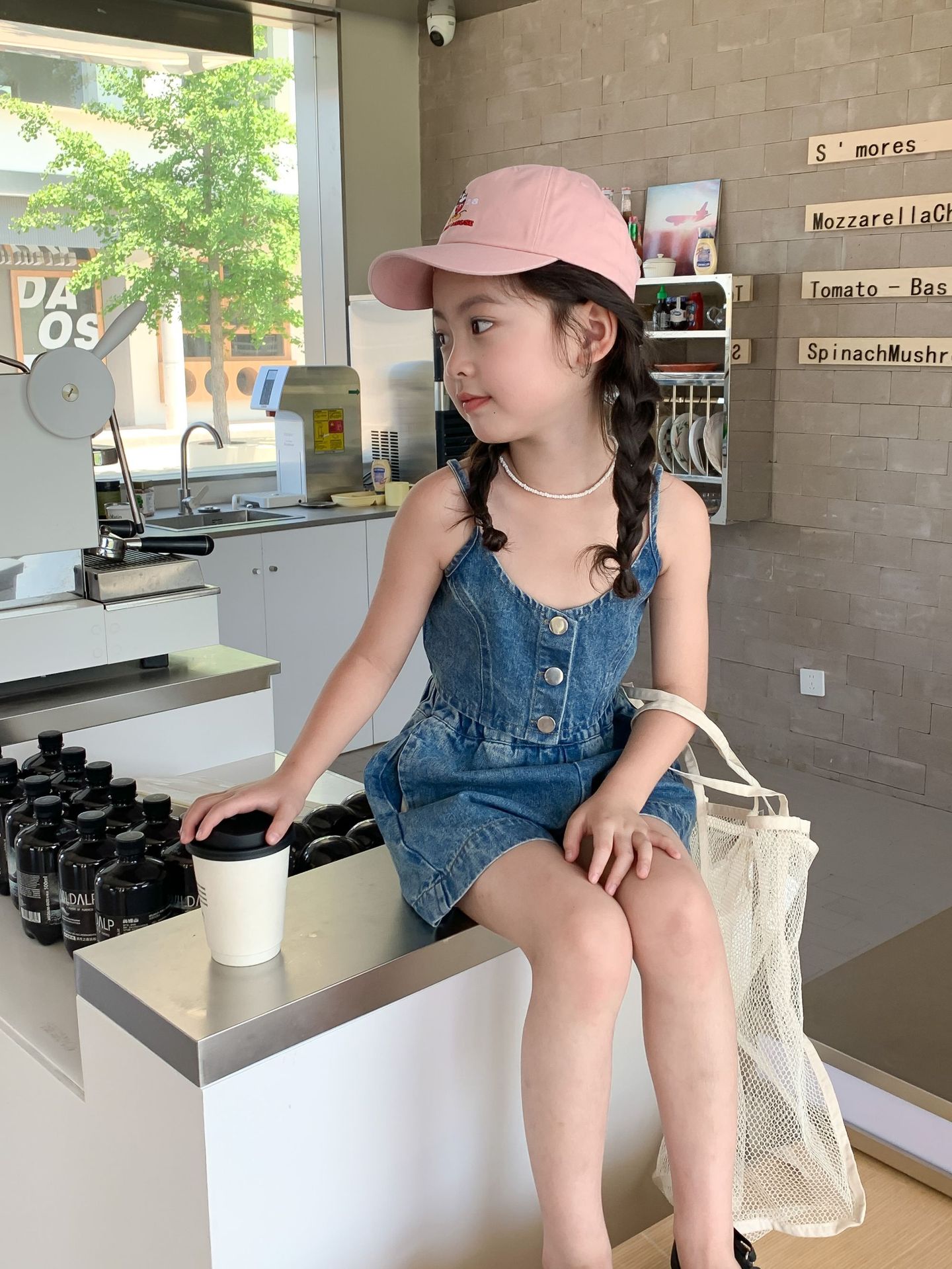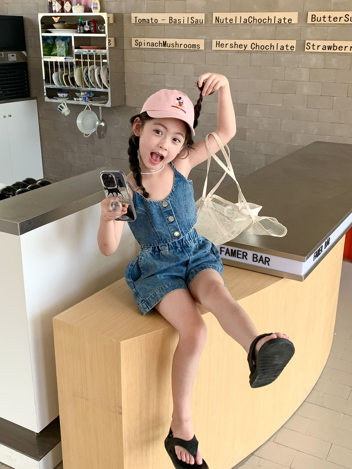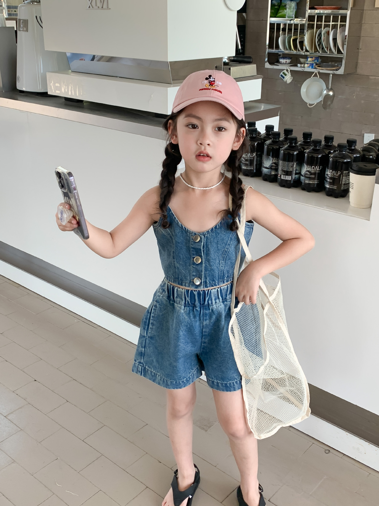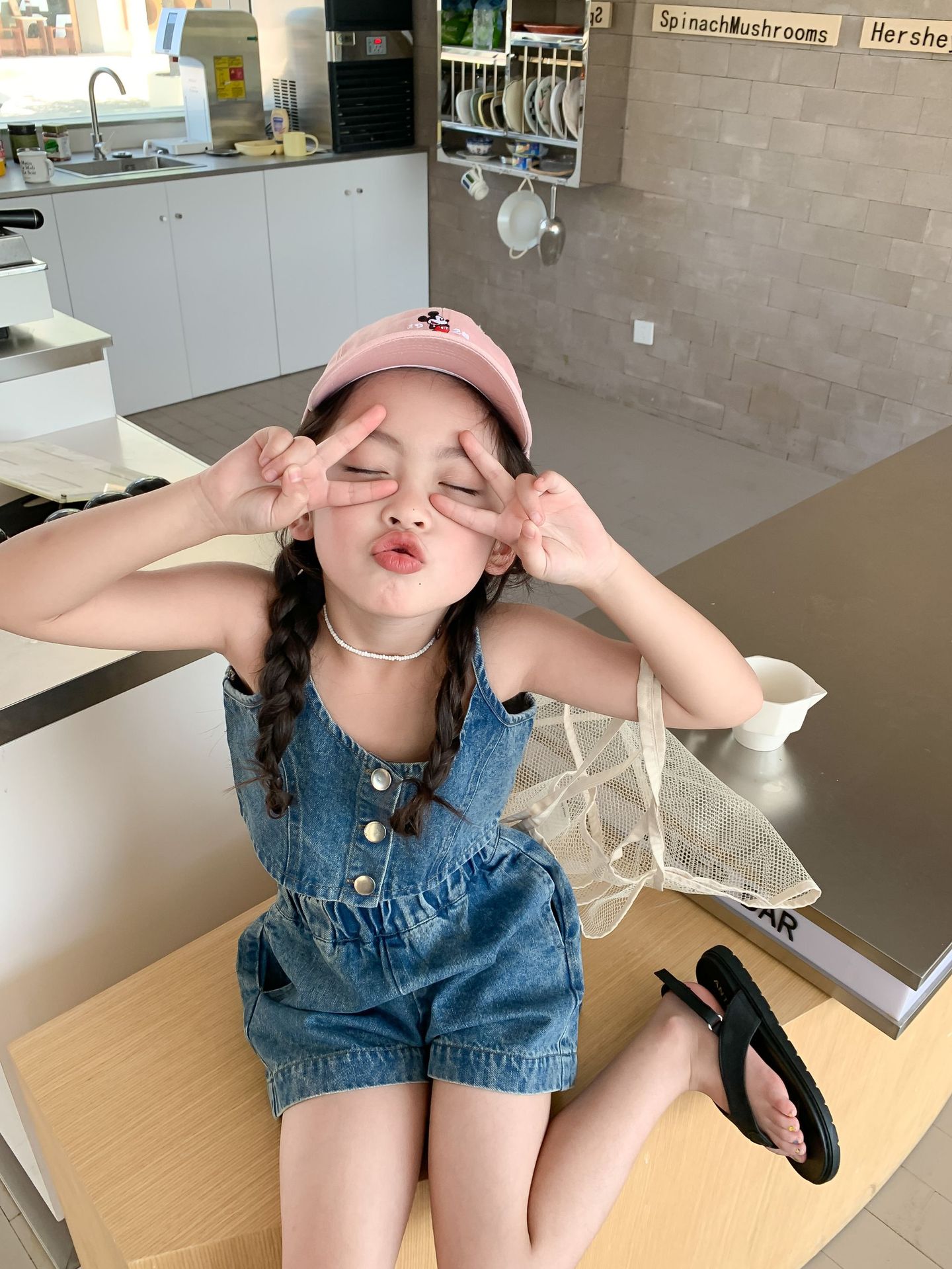 Детская одежда, костюм для девочек в Корейском стиле, лето 2023, модный джинсовый жилет на бретелях и шорты в Корейском стиле, комплект из двух предметов