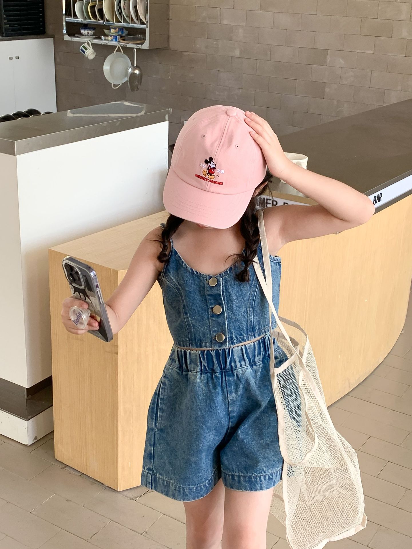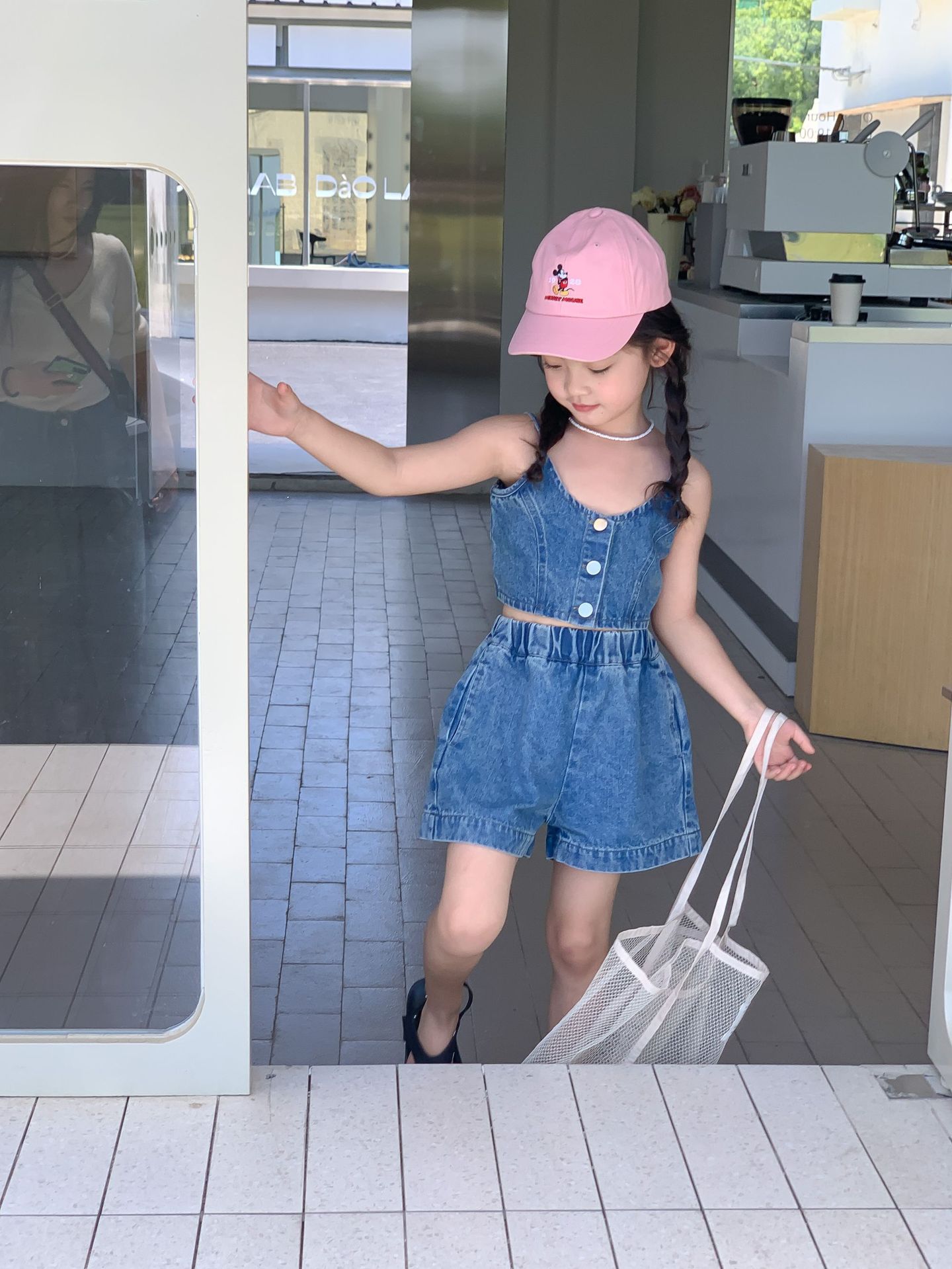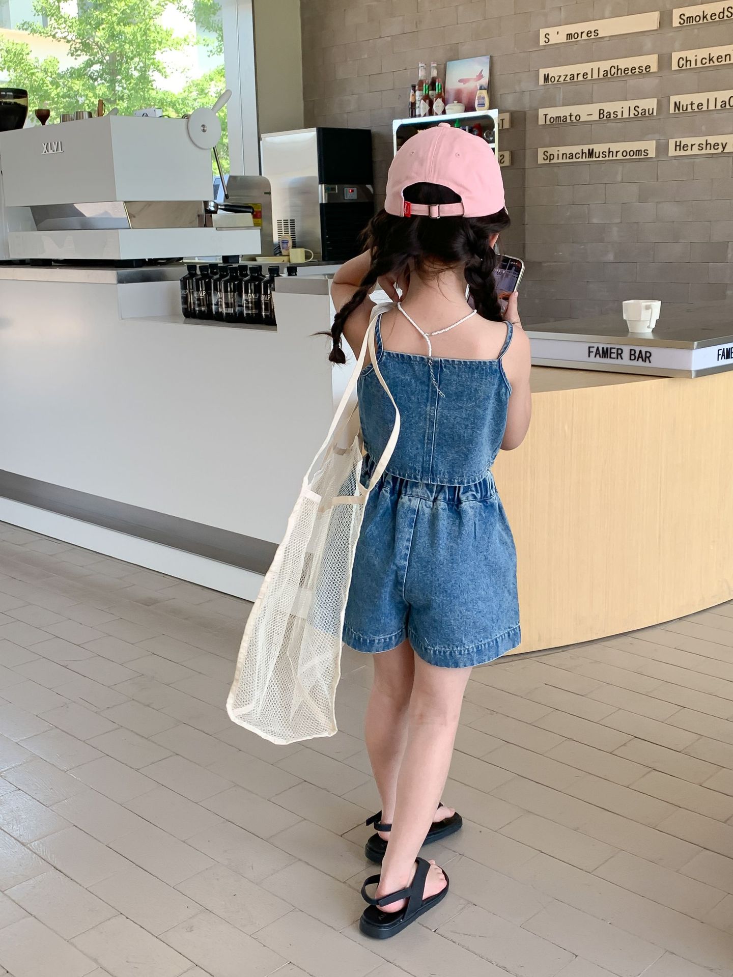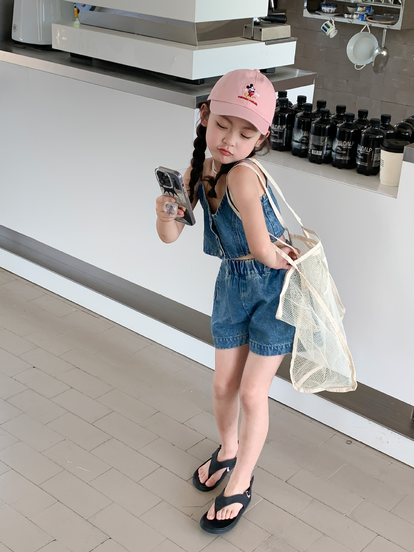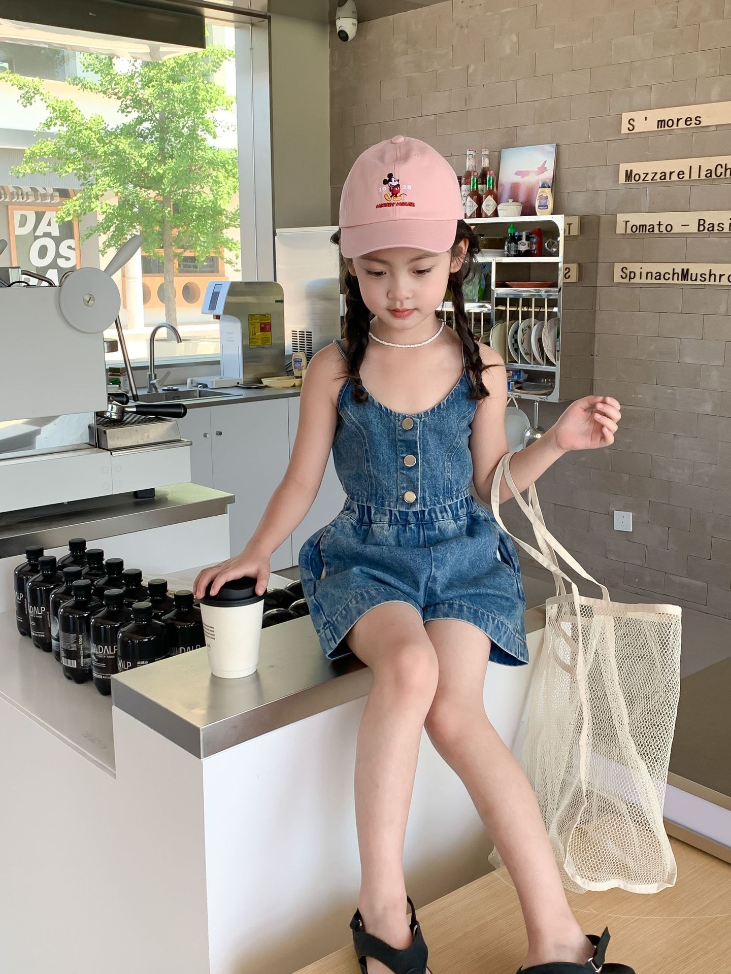 Детская одежда, костюм для девочек в Корейском стиле, лето 2023, модный джинсовый жилет на бретелях и шорты в Корейском стиле, комплект из двух предметов
