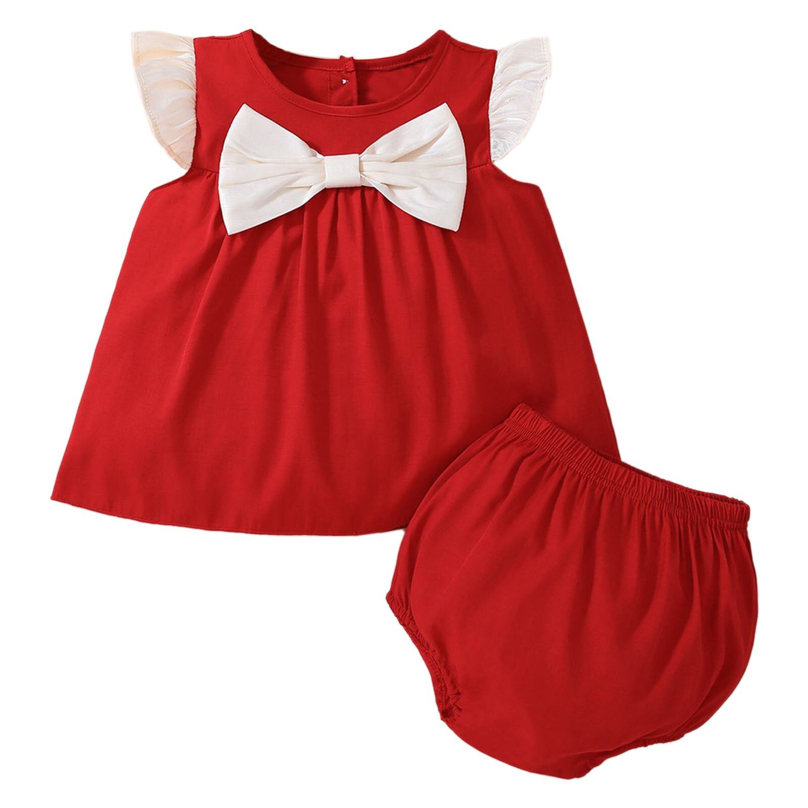 Детская Одежда с бантом летние однотонные шорты без рукавов в европейском и американском стиле для маленьких девочек милый детский костюм