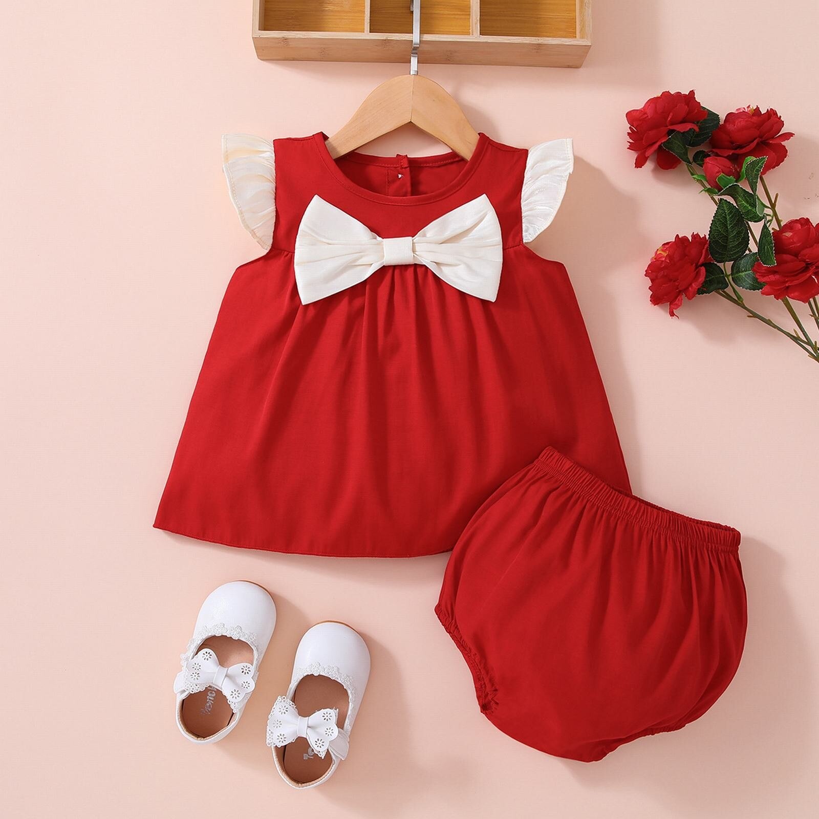 Летняя Европейская и американская однотонная детская одежда для маленьких девочек, шорты без рукавов с бантом, милый детский костюм