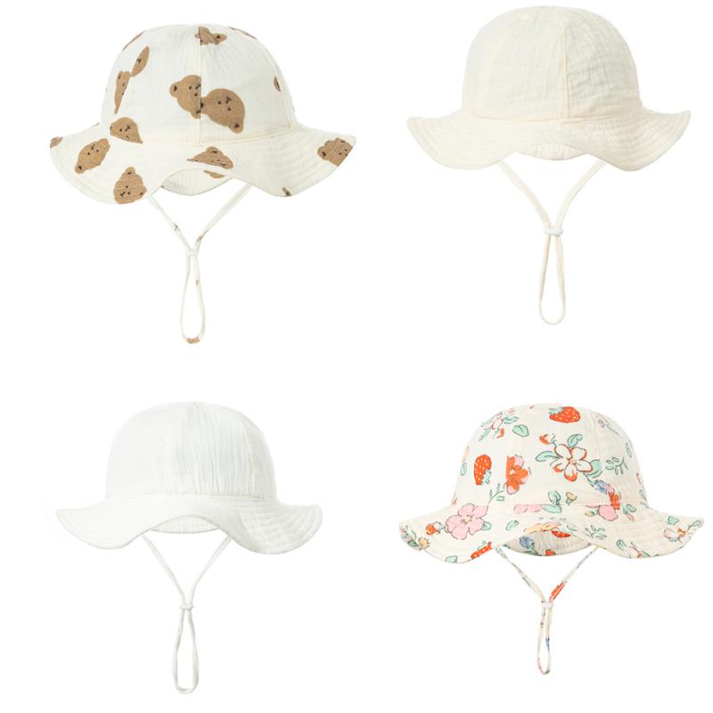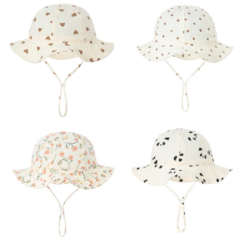 Новая детская однотонная шляпа от солнца из чистого хлопка, шляпа для бассейна, Детская шляпа рыбака с принтом, Детская летняя уличная детская шляпа от солнца для мальчиков и девочек