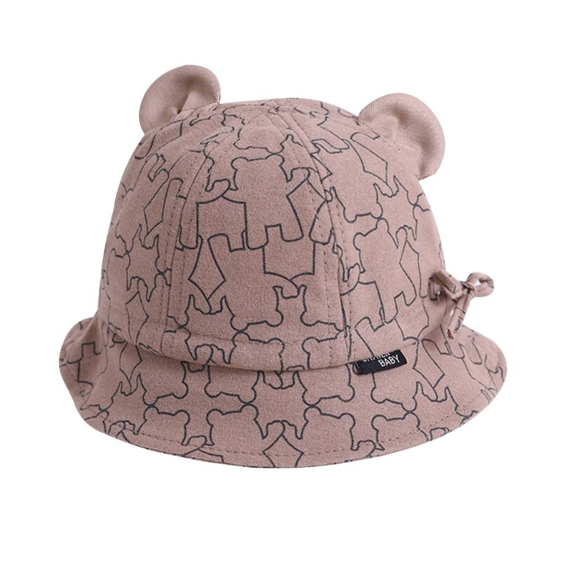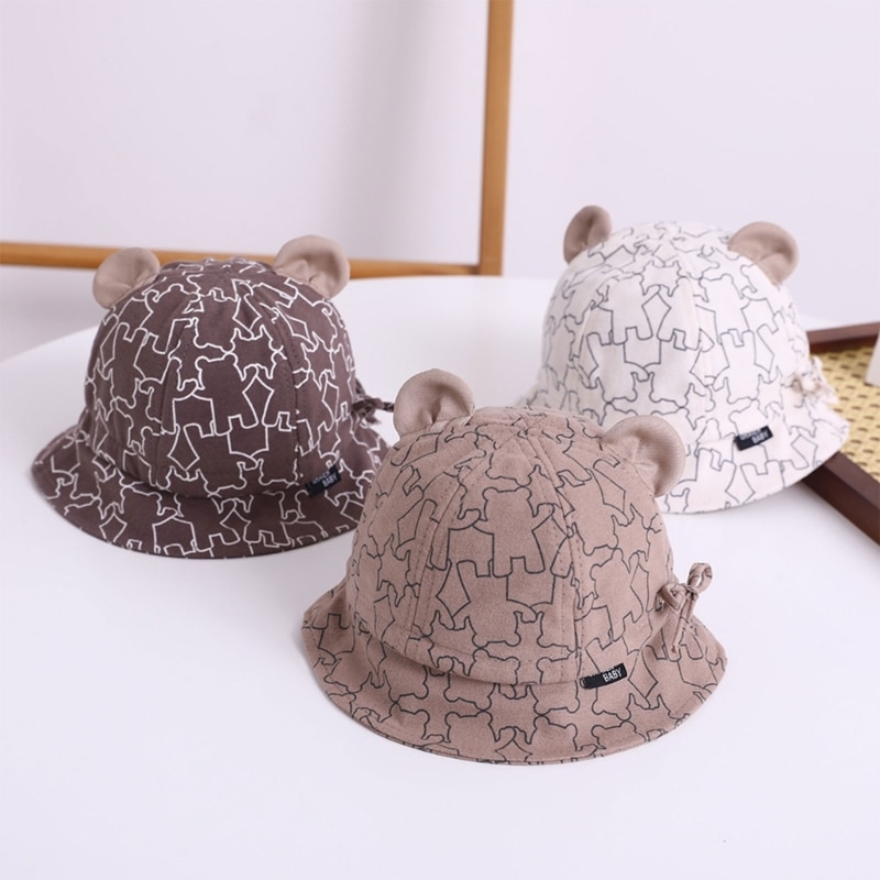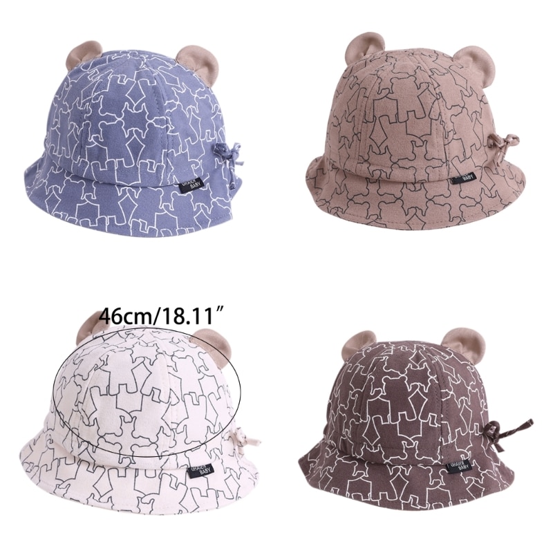 Baby Bucket Hat: Детская шляпа от солнца с широкими полями, простая шляпа-ведро и милый дизайн ушей медведя, гендерно-нейтральный шаблон печати может легко поместиться для ребенка, разного наряда, против ветра и защиты от солнца, подходит для повседневной одежды летом, весной и осенью.