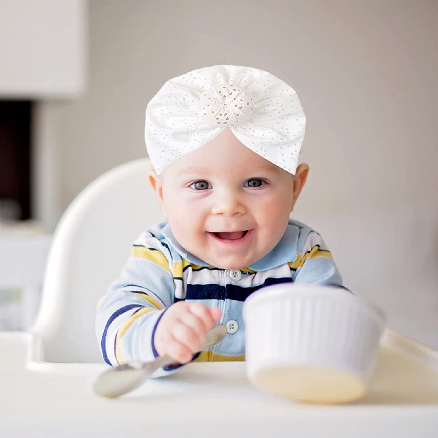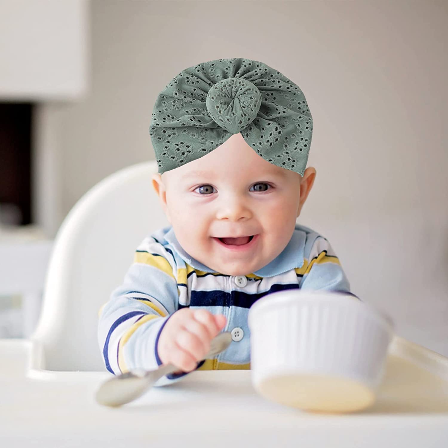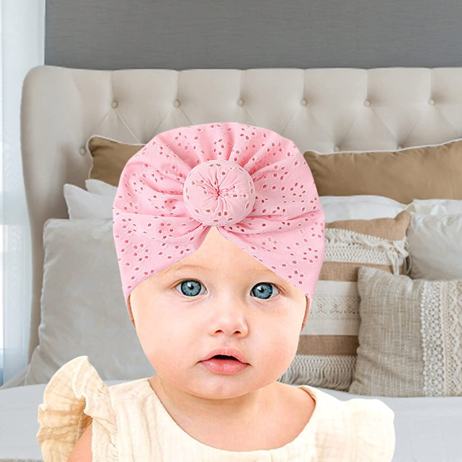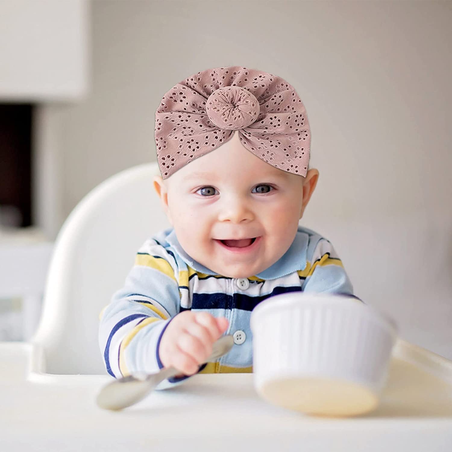 Шляпа-тюрбан для новорожденных изготовлена из жаккарда с отличным качеством изготовления.