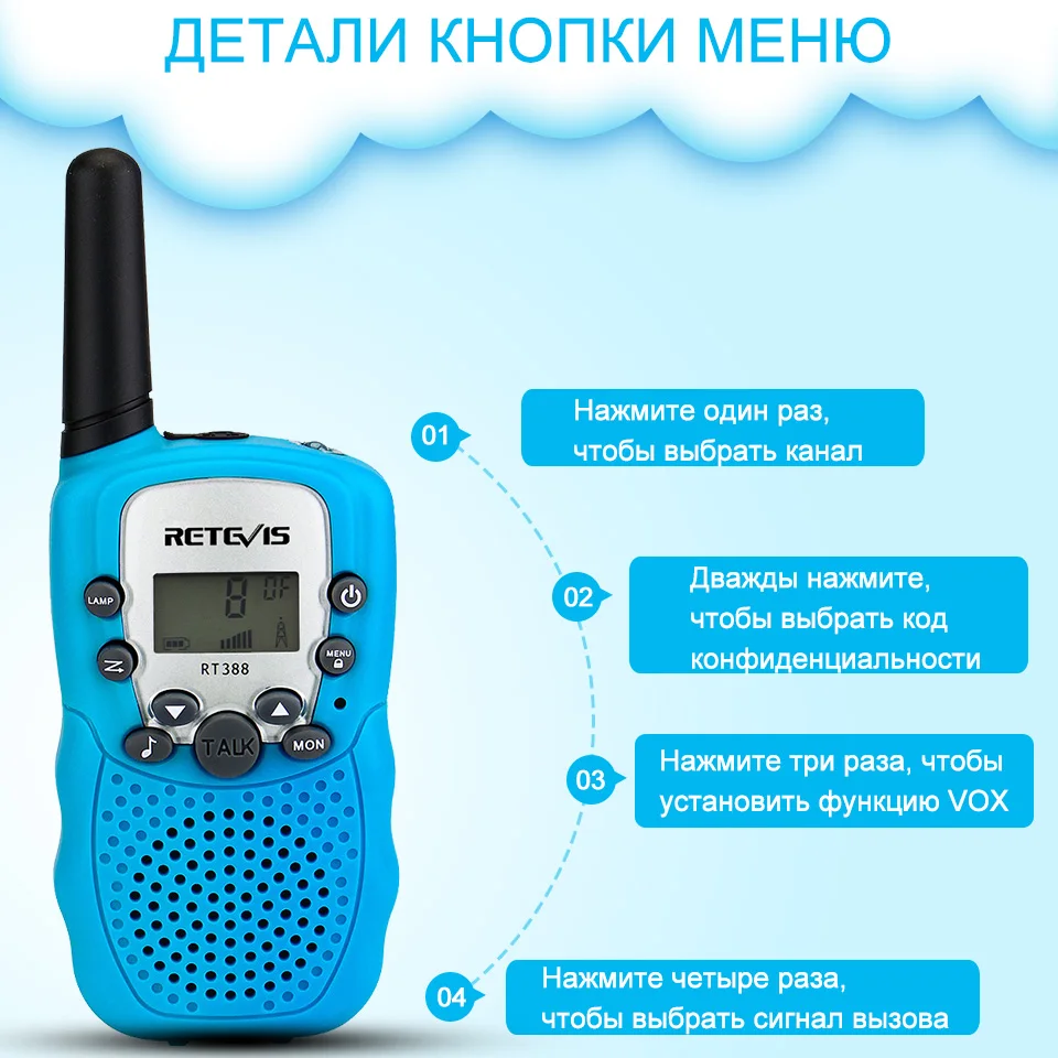 Рация может стимулировать интерес детей к общению; и пусть ваши дети наслаждаются семейными прогулками или играми на свежем воздухе, в походах, кемпингах и т.д.