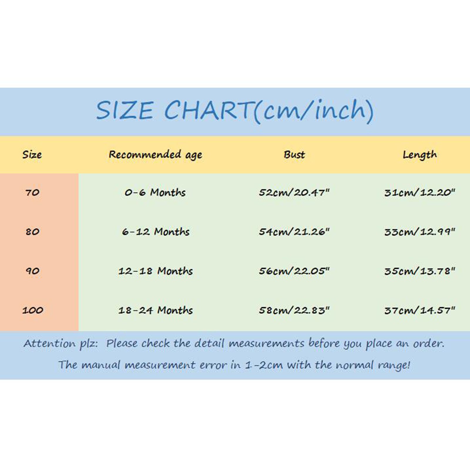 Размер: 70 Рекомендуемый Возраст: 0-6 месяцев Бюст: 52 см/20,47 дюйма Длина: 31 см/12,20 дюйма