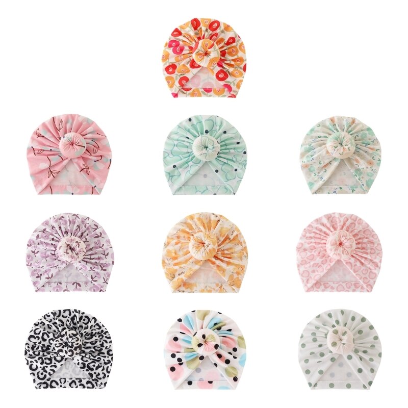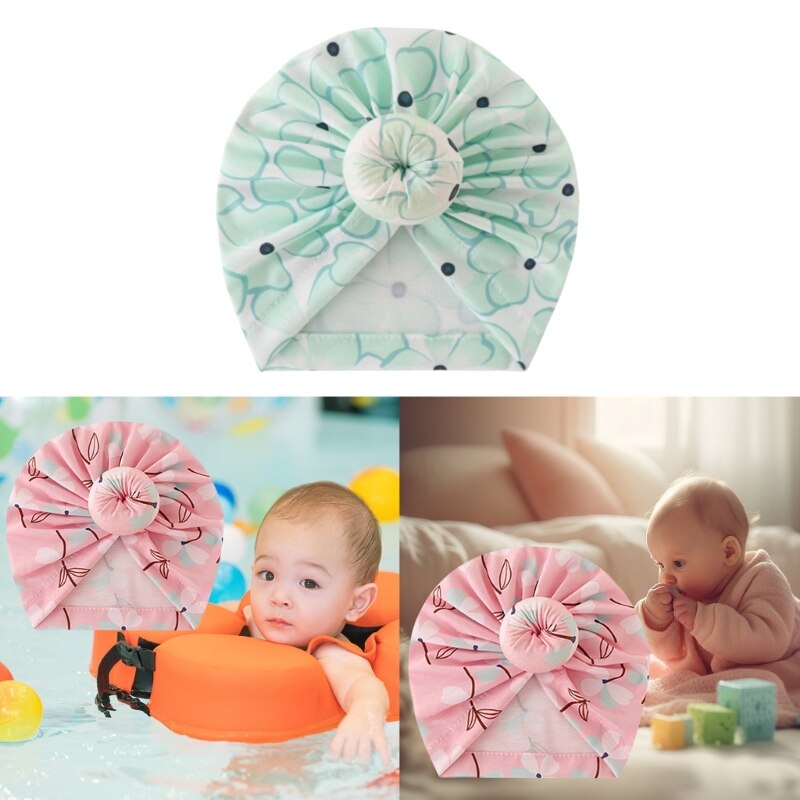 Big Knotted Baby Beanie: Детская Шапка-бини с симпатичным большим узлом, элегантной цветочной печатью, мягкой дышащей, которая идеально подходит для детской весенней и летней повседневной одежды, приятный для кожи материал гарантирует, что головы ваших маленьких детей сухие и удобные.