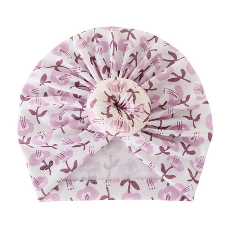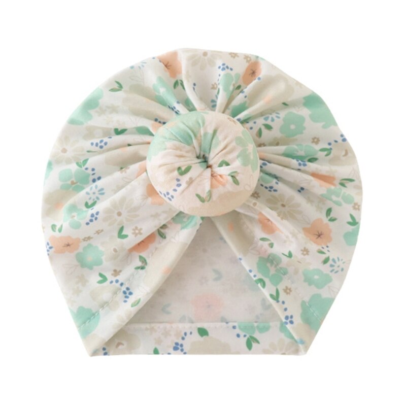 Детская шапка, индийская шапка, дышащая шапка с большим узлом для новорожденных, Шапка-бини с цветочным принтом, безопасная для кожи детская эластичная шапка GXMB