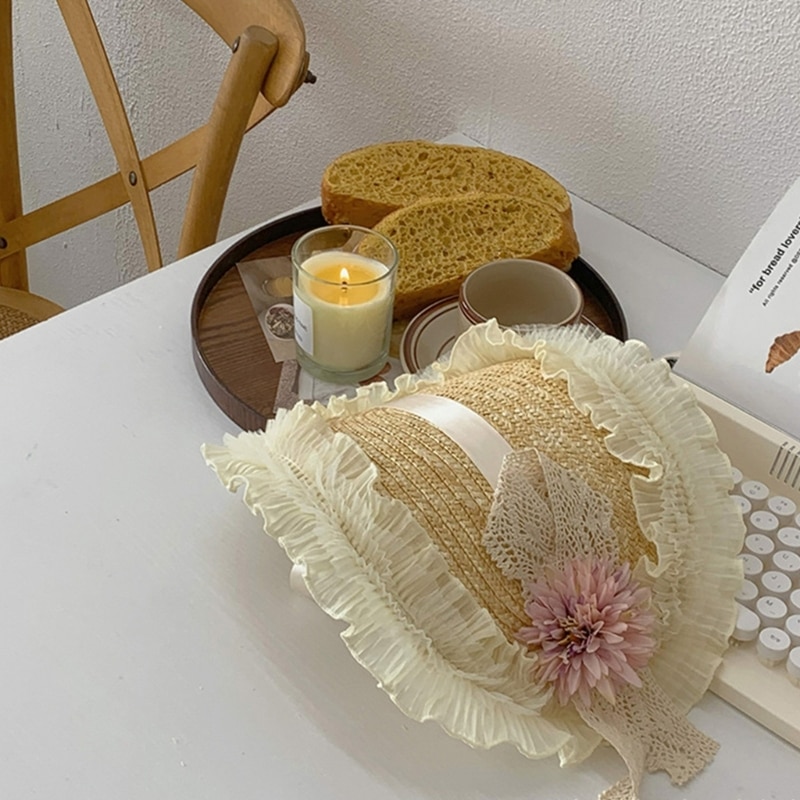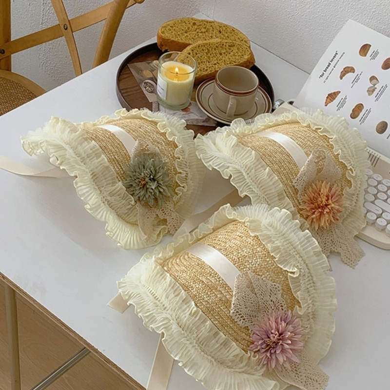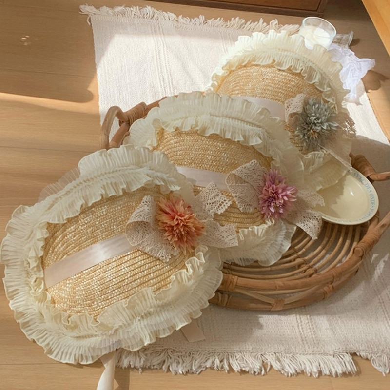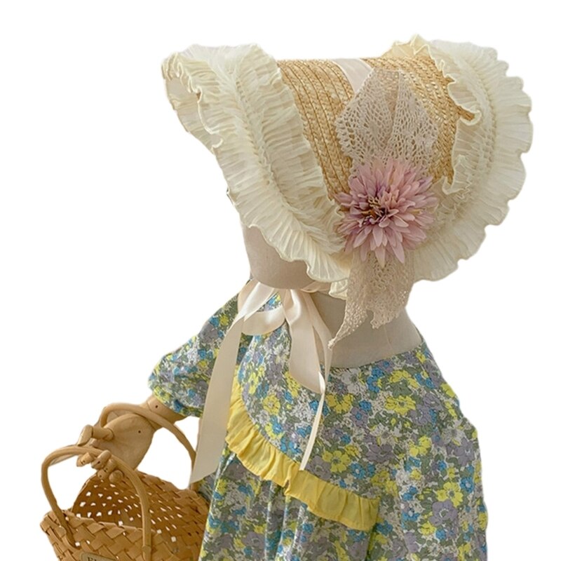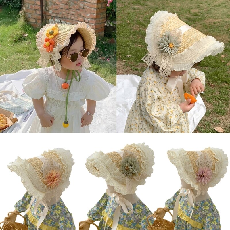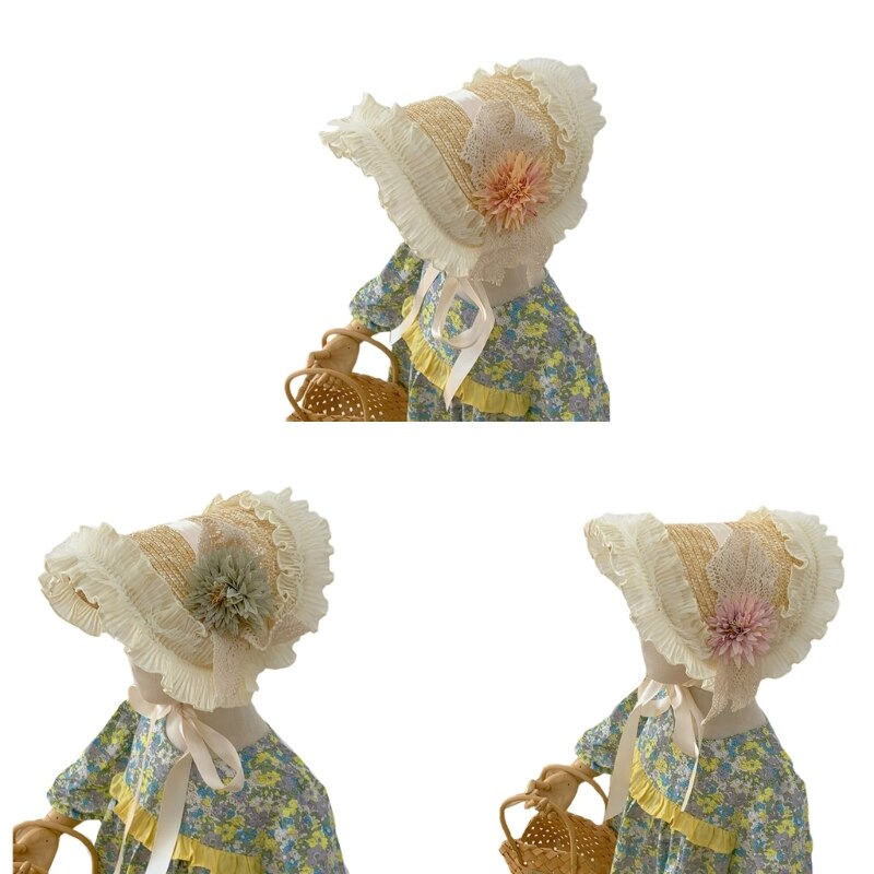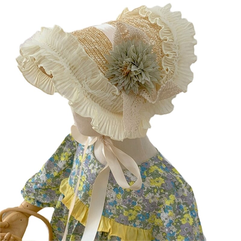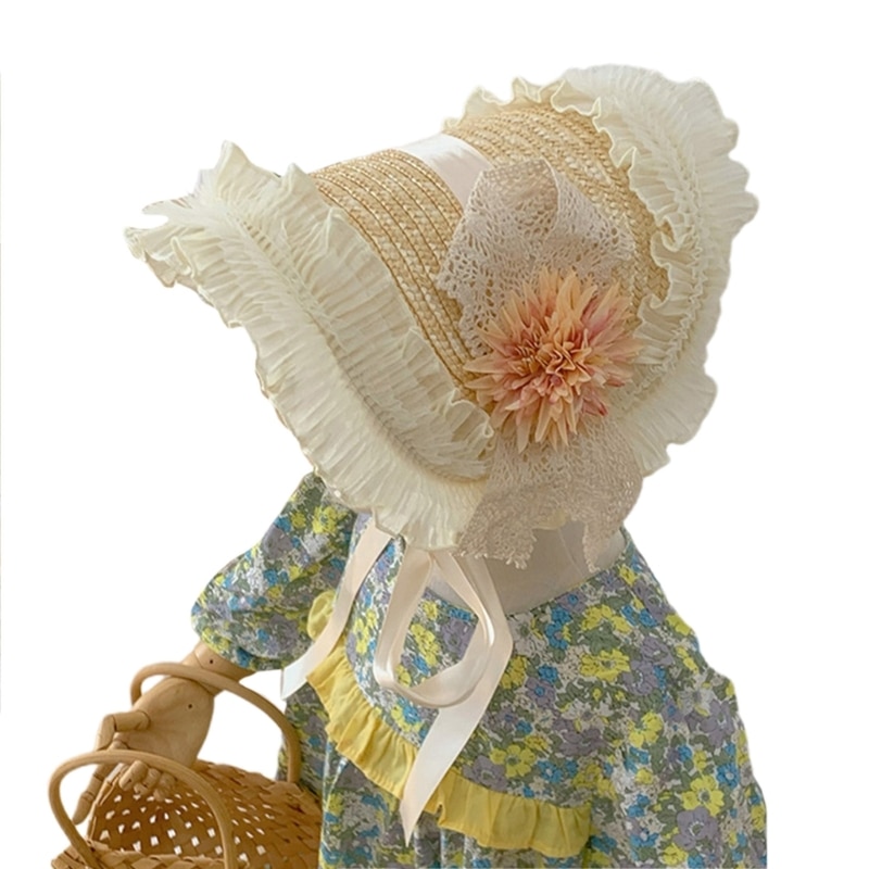 Шляпа капота для девочек: шапка для маленьких девочек, разработанная с рюшами и цветочным дизайном, ручная работа с соломенными полями, с 3 дополнительными стилями на выбор, элегантная и дышащая, может легко сочетаться с девочками в другом наряде, красивый с винтажным внешним видом.