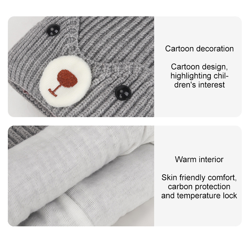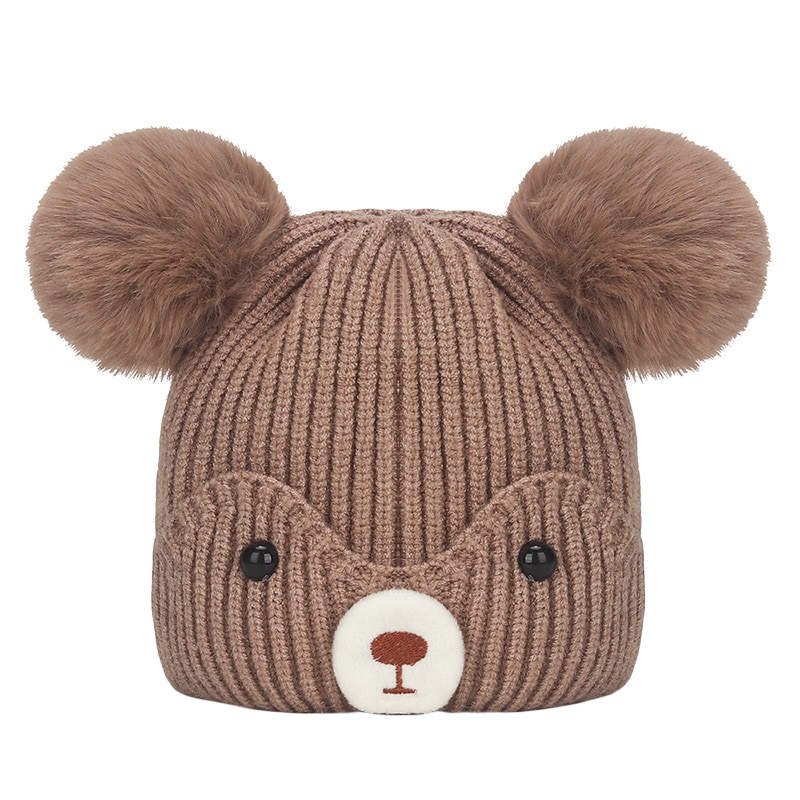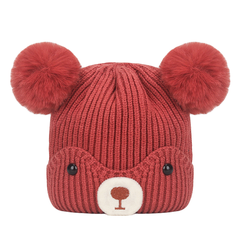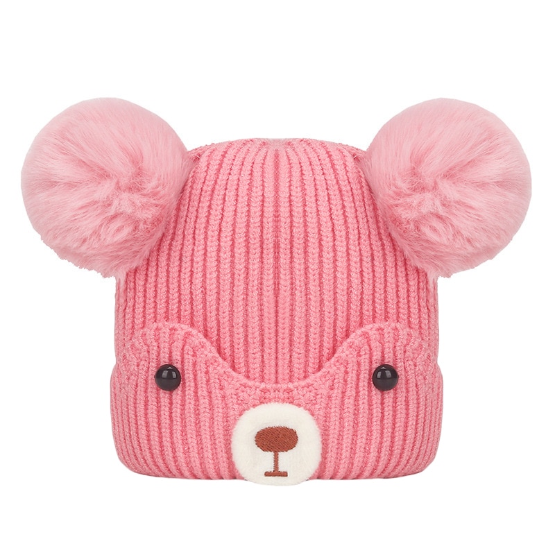 Контрастный цвет, вязаная шапка с мультяшным медведем, хорошая прочность, красивая и модная.