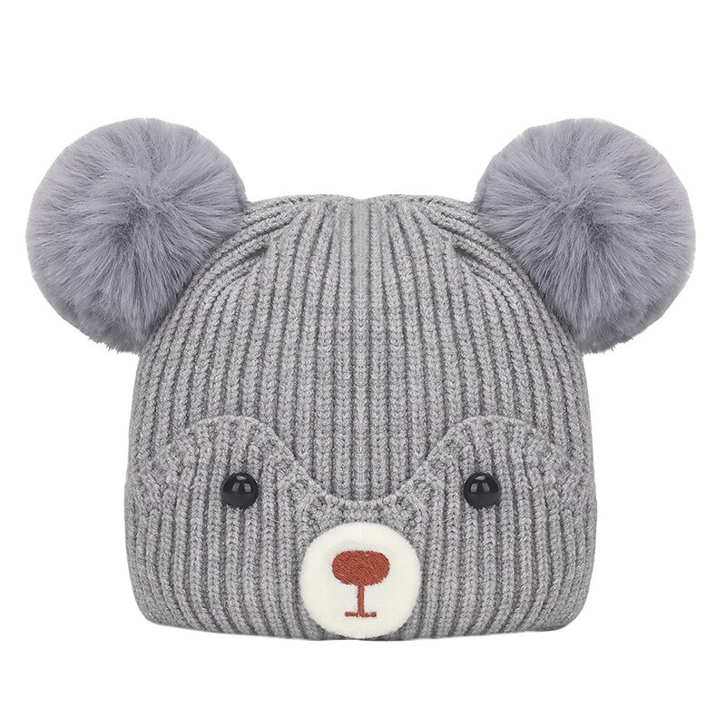 Детская шапка с мультяшным медведем, шляпа-бини, зимний наряд для девочек, мальчиков, детская вязаная шапка