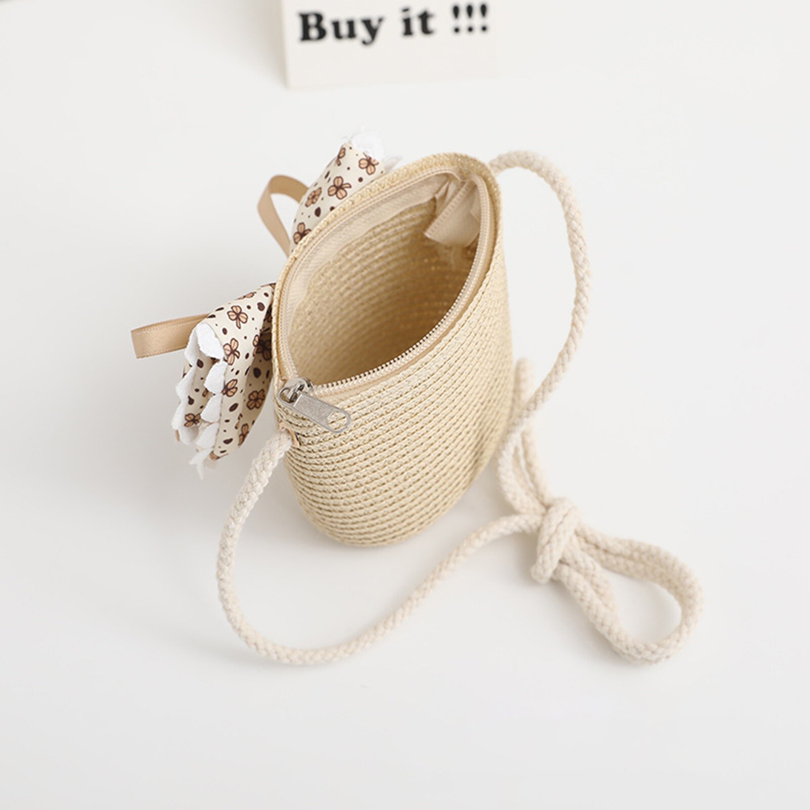 Описание: Детская соломенная шляпа-котелок для девочек Летняя пляжная шляпа с широкими полями и бантом от солнца и сумка через плечо для малышей Приморское путешествие на открытом воздухе