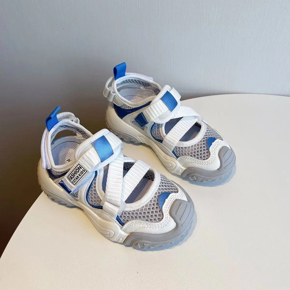 Детская спортивная обувь с вырезами, летняя дышащая сетчатая резиновая нескользящая спортивная обувь для мальчиков и девочек, сандалии, детские повседневные кроссовки