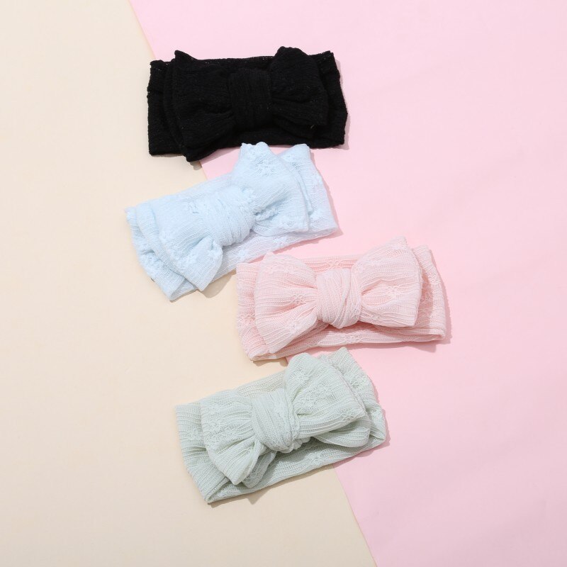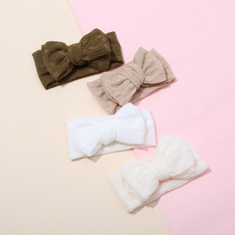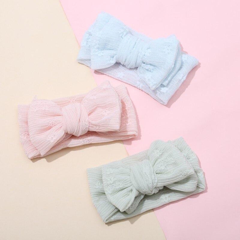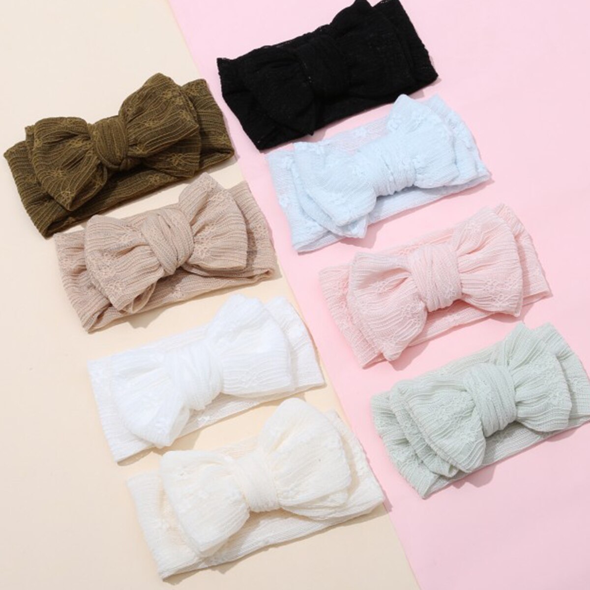 Детская весенне-летняя Кружевная повязка на голову с большим бантом и цветочным принтом, эластичная повязка на голову с милым бантом для новорожденных