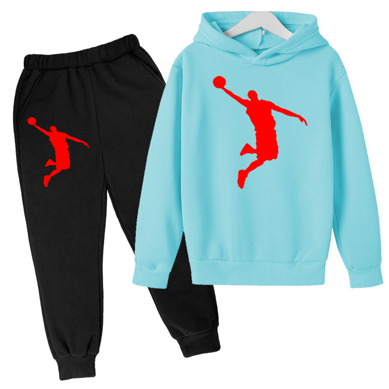 Детская Весенняя спортивная одежда Nba для мальчиков и девочек, повседневная одежда для бега, куртка с капюшоном и брюки, комплект из 2 предметов