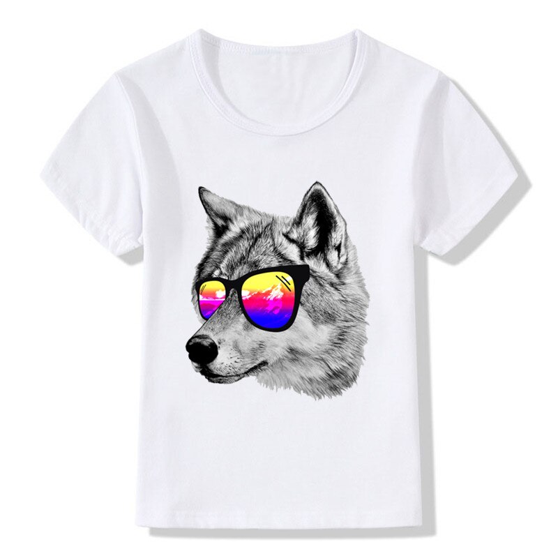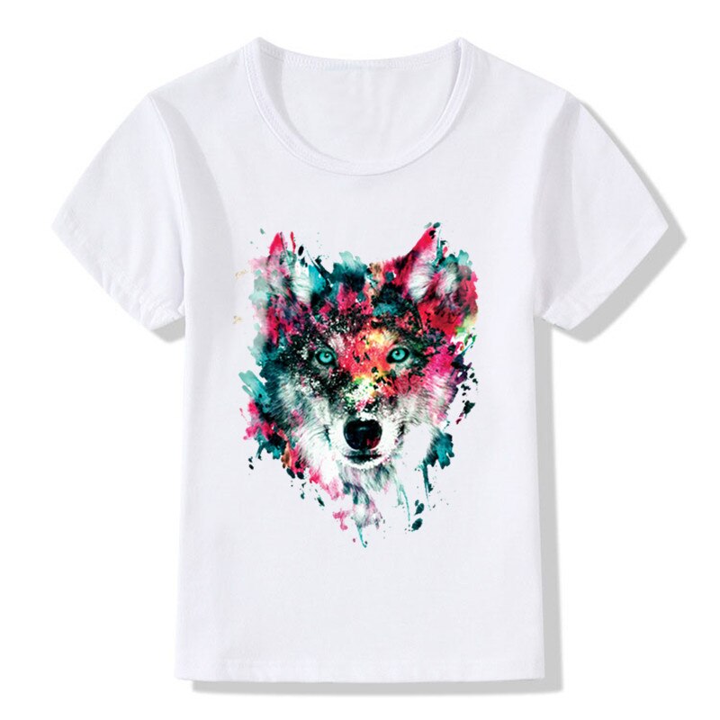 Детская забавная футболка с акварельным принтом волка летние топы для девочек и мальчиков детская одежда повседневная детская футболка
