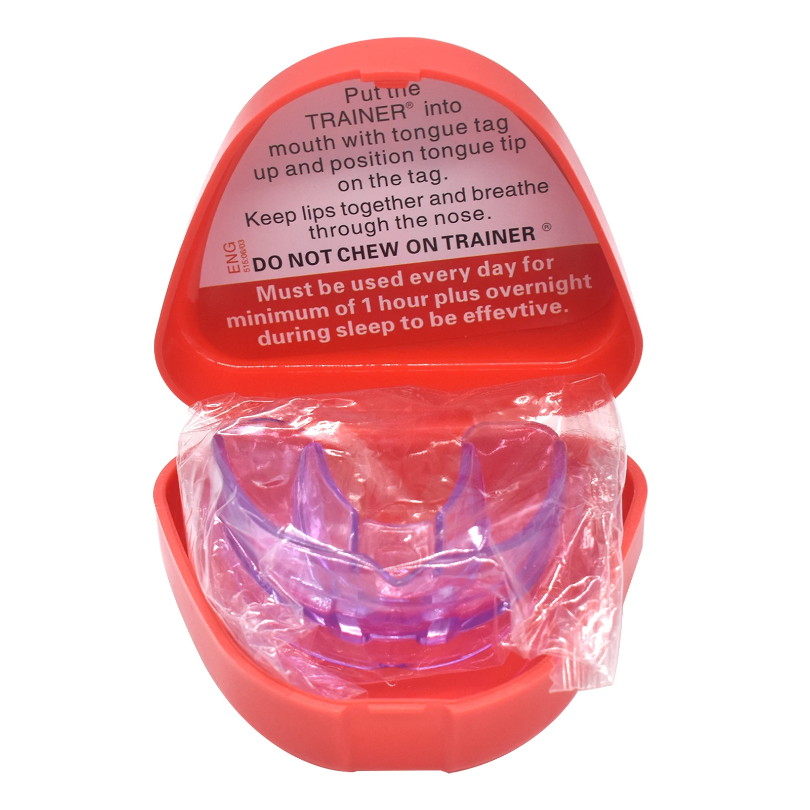 The Trainer for Kids / Pre-Orthodontic TRAINER is most effective in early mixed dentition for the correction of myofunctional habits and tooth eruption guidance. Tooth Channels and Labial Bows guide the developing dentition into correct alignment, while the Tongue Tag and Lip Bumpers treat myofunctional habits.