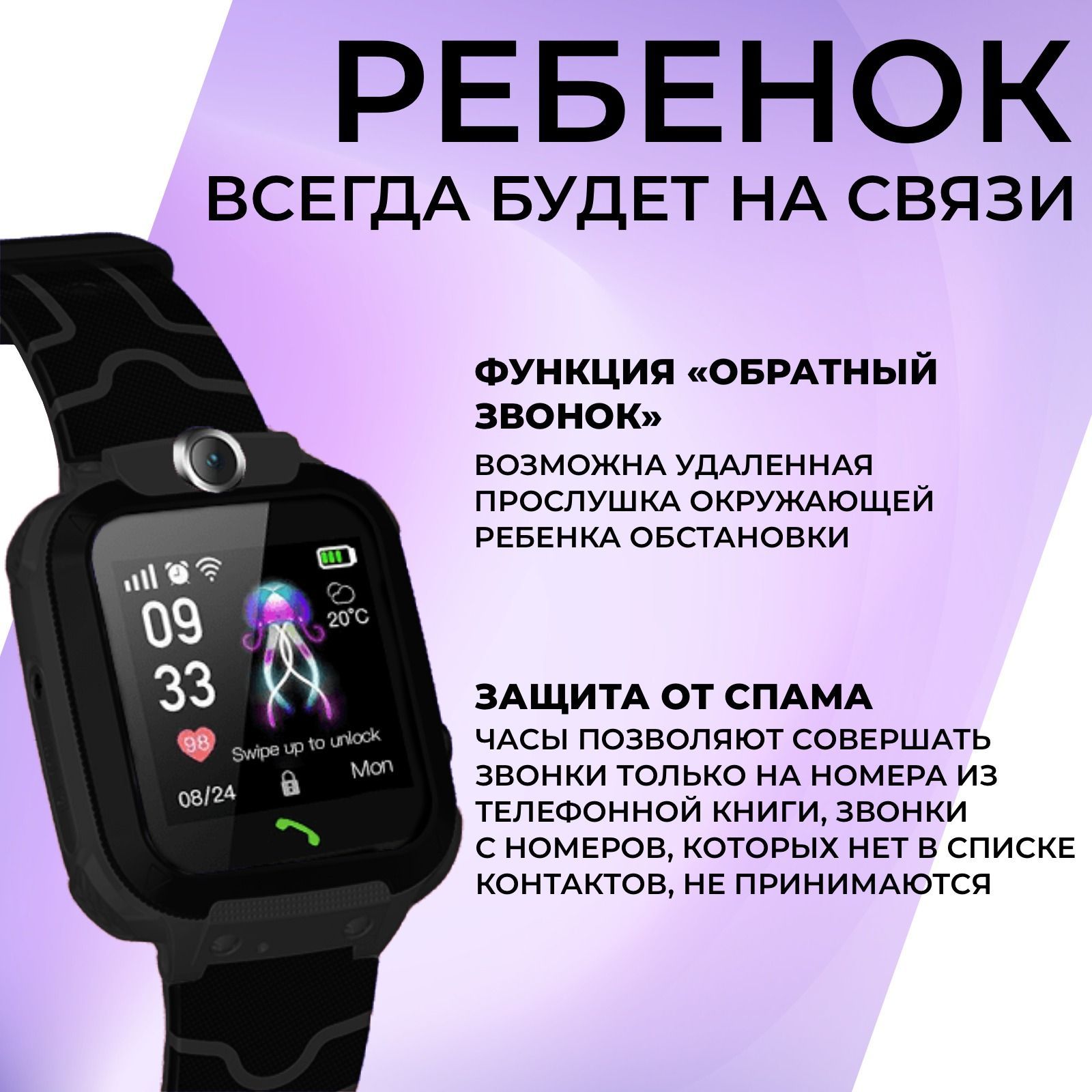 Детские часы с gps и телефоном черные