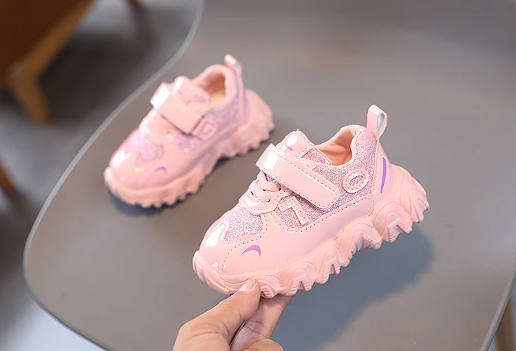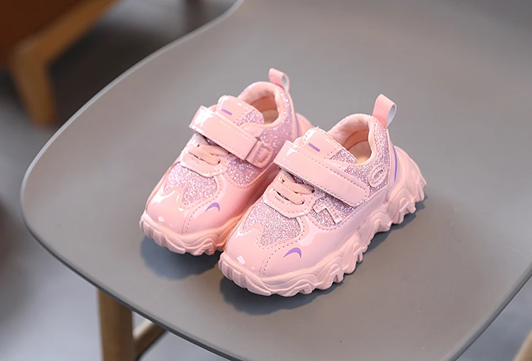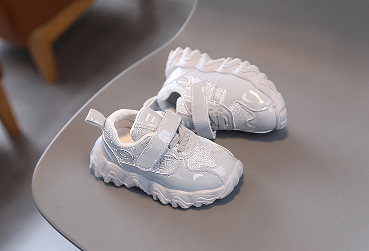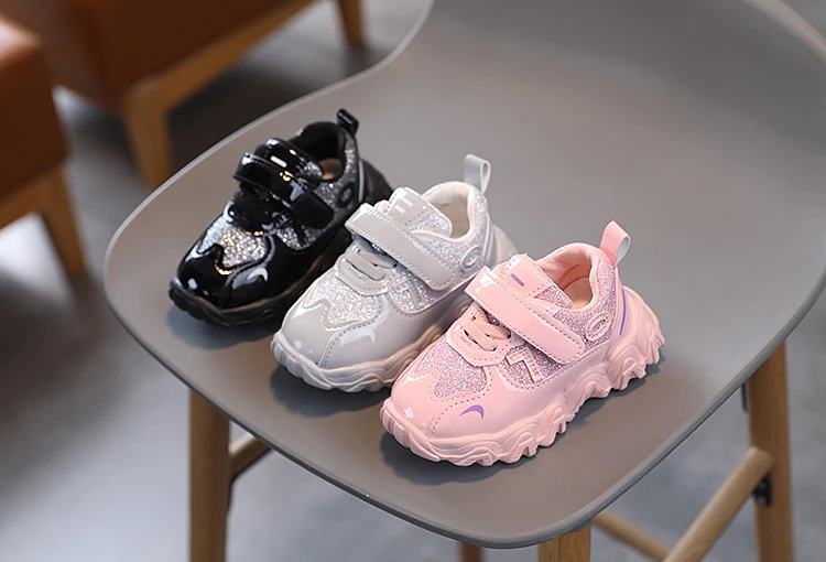 Детские демисезонные кроссовки для девочек и мальчиков, модная блестящая Нескользящая детская обувь на плоской подошве, детская повседневная спортивная обувь для бега