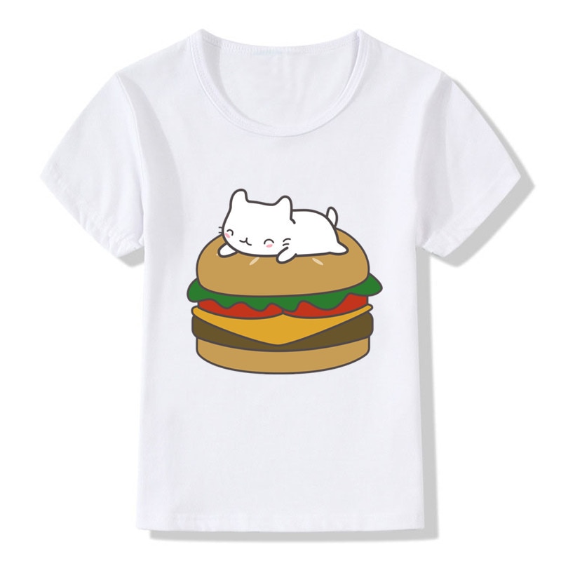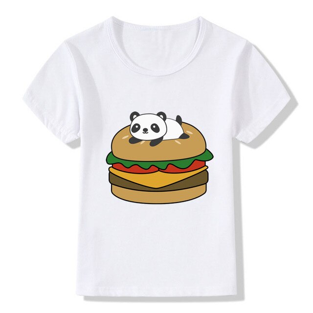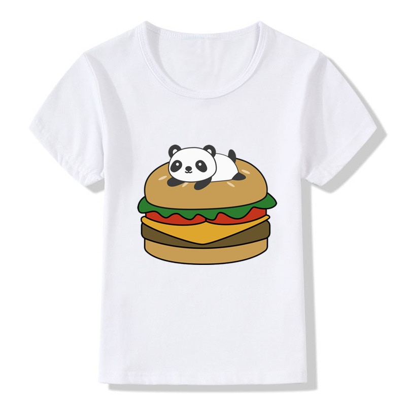 Детские футболки с изображением панды, кошек, бургеров, детские летние топы для девочек и мальчиков, одежда с коротким рукавом, Детская футболка с гамбургерами