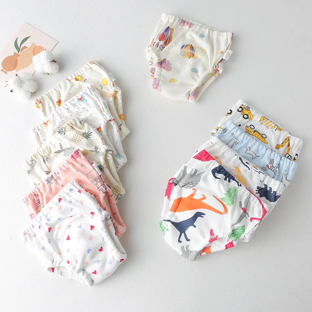 Детские хлопковые тренировочные штаны, подгузники, многоразовые моющиеся регулируемые детские мягкие хлопковые нижнее белье со вставками для маленьких мальчиков и девочек