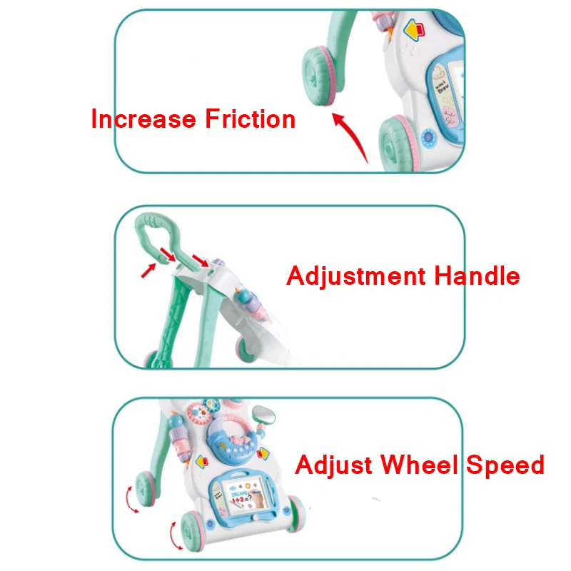 High Quality Baby Walker Toys Multifuctional Toddler Trolley Sit-to-Stand ABS Musical Walker with Adjustable Screw for Toddler