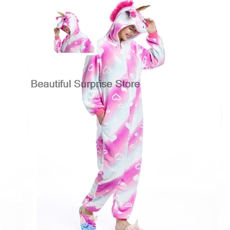 Детские кигуруми в виде единорога, пижамы-кигуруми с мультяшным рисунком, зимняя фланелевая теплая одежда для сна, комбинезоны в виде животных для мальчиков и девочек, Комбинезоны