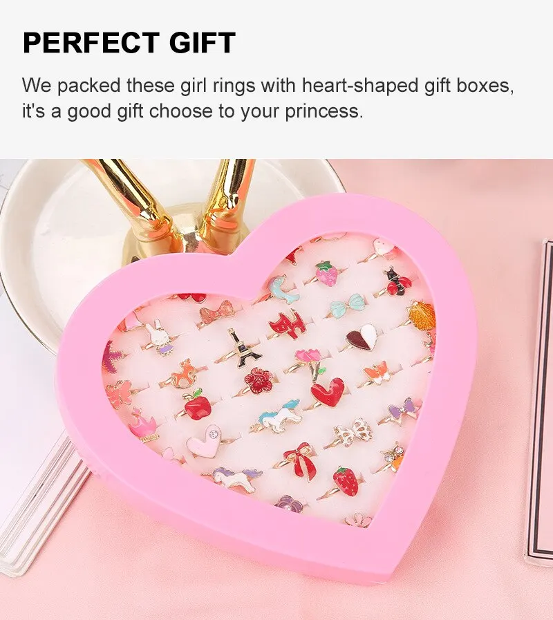 We packed these girl rings with heart-shaped gift boxes, it's a good gift choose to your princess.