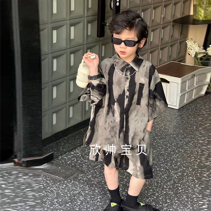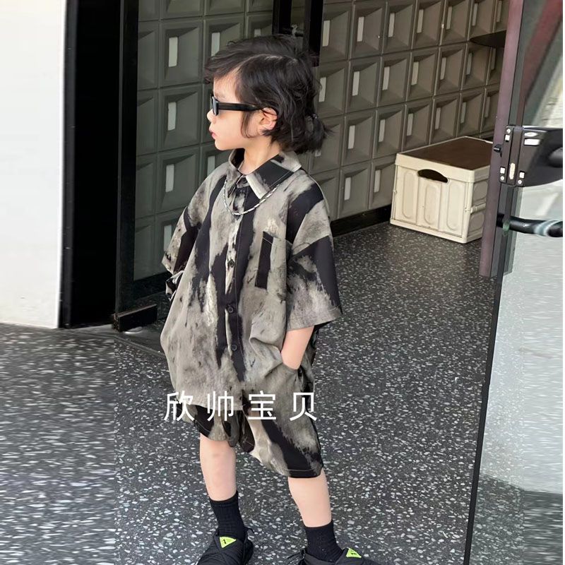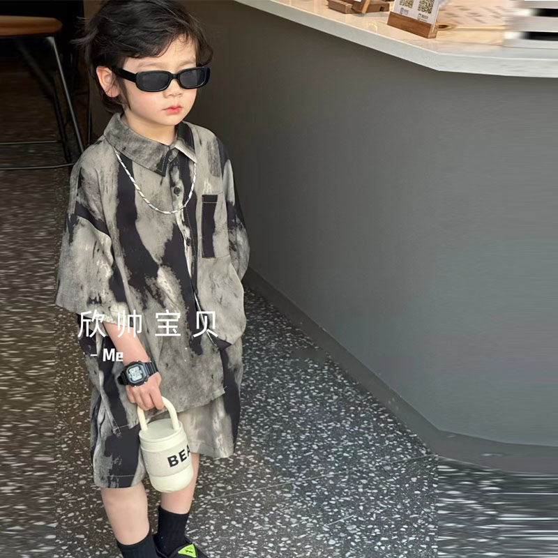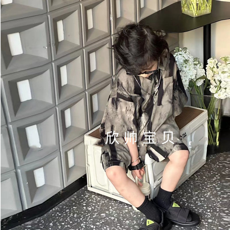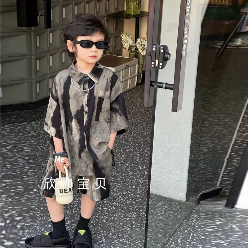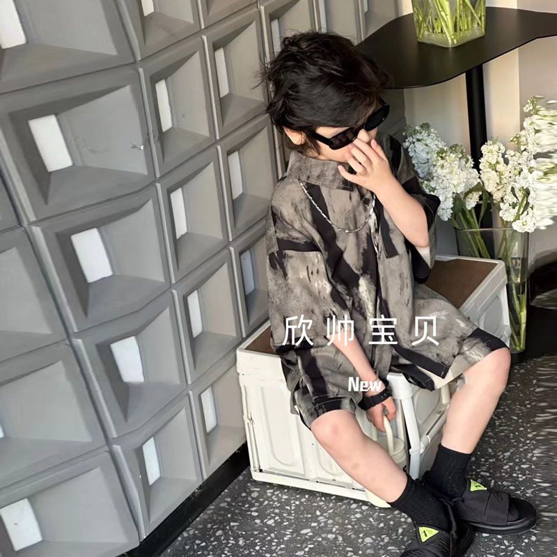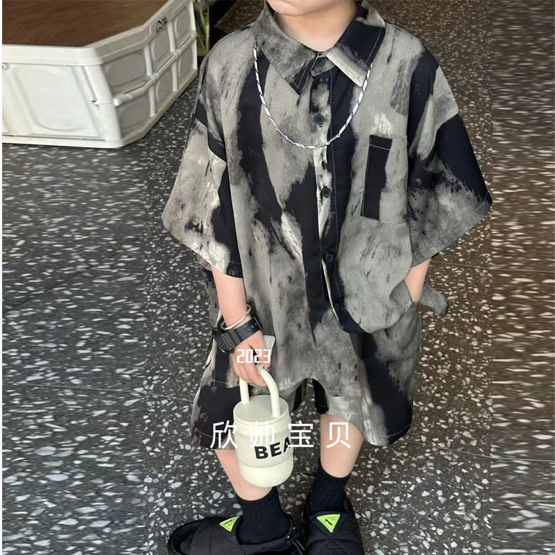 Детские комплекты в Корейском стиле, повседневные Простые шорты с отложным воротником и принтом для мальчиков, лето 2023