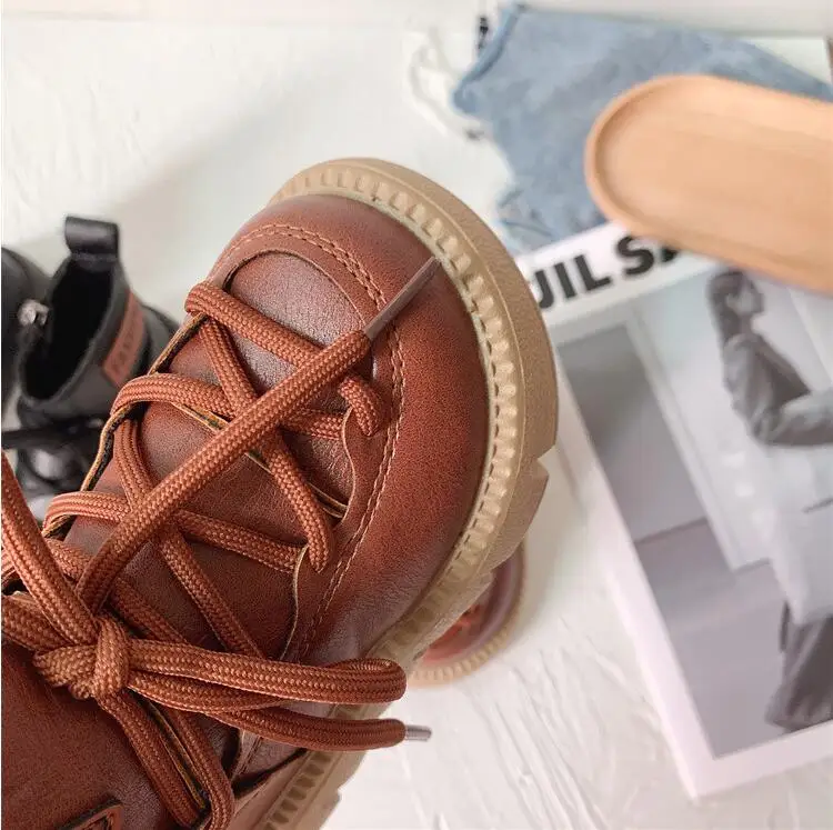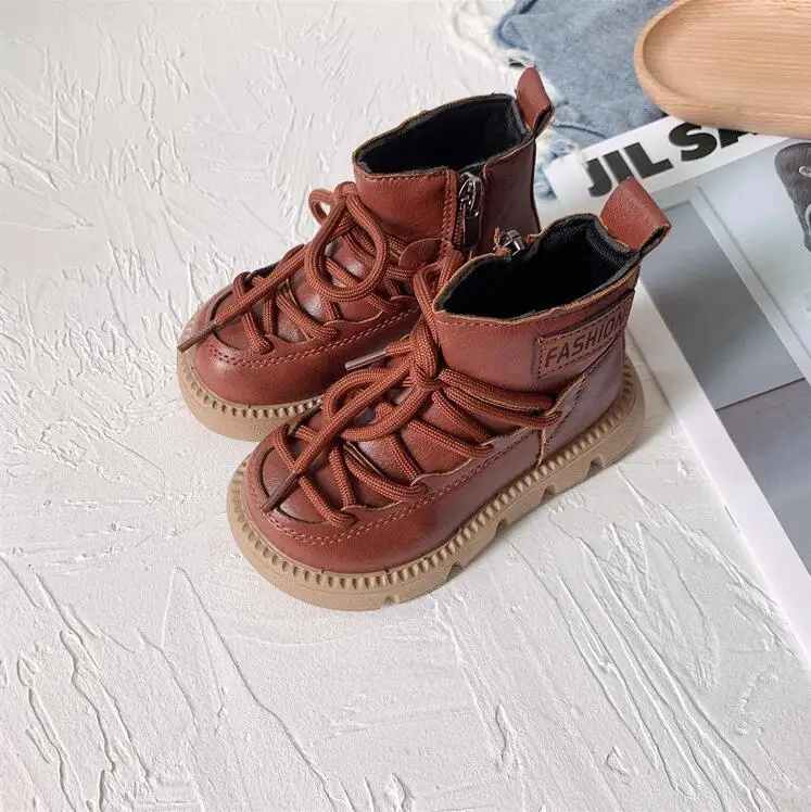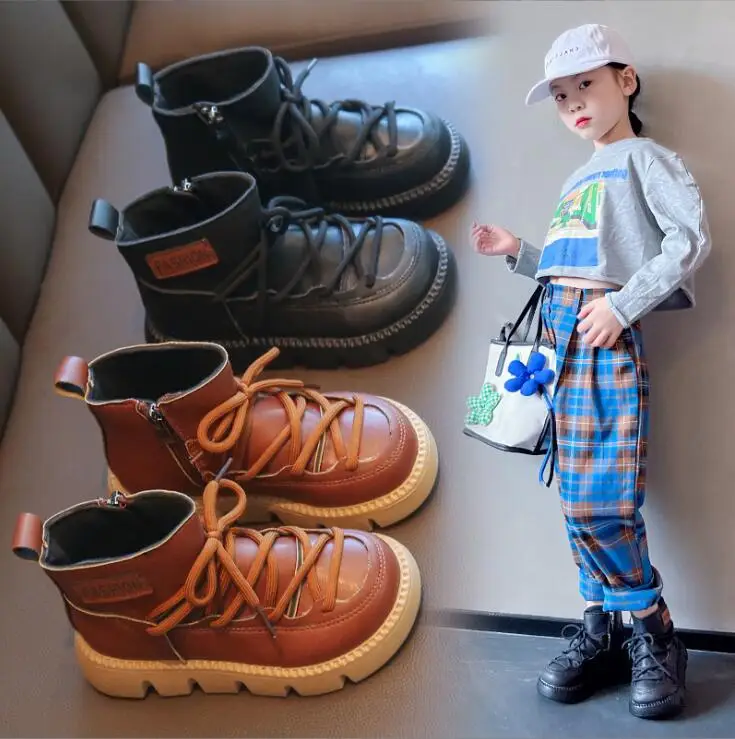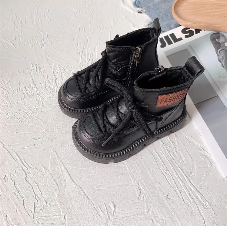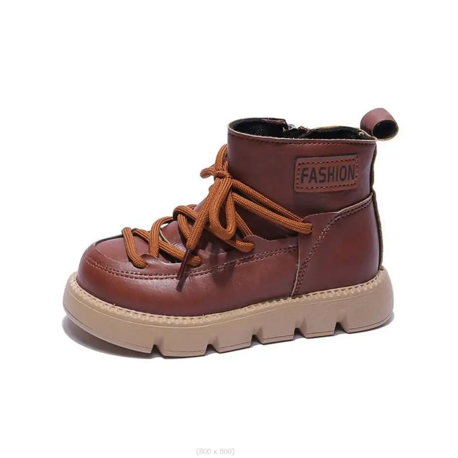 Детские кожаные ботинки для девочек и мальчиков, модные Нескользящие ботинки на мягкой нескользящей подошве, кроссовки для бега, 2 цвета, 23-37, Осень-зима