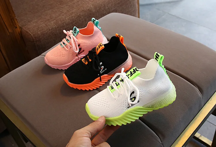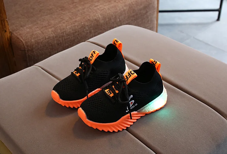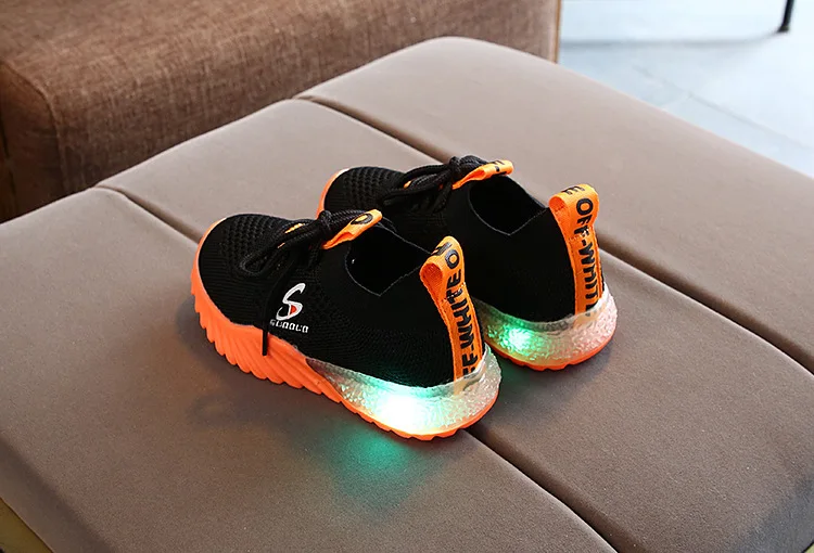 Детские кроссовки с подсветкой, спортивная обувь для бега из сетчатой ткани, модные кроссовки для начинающих ходить детей