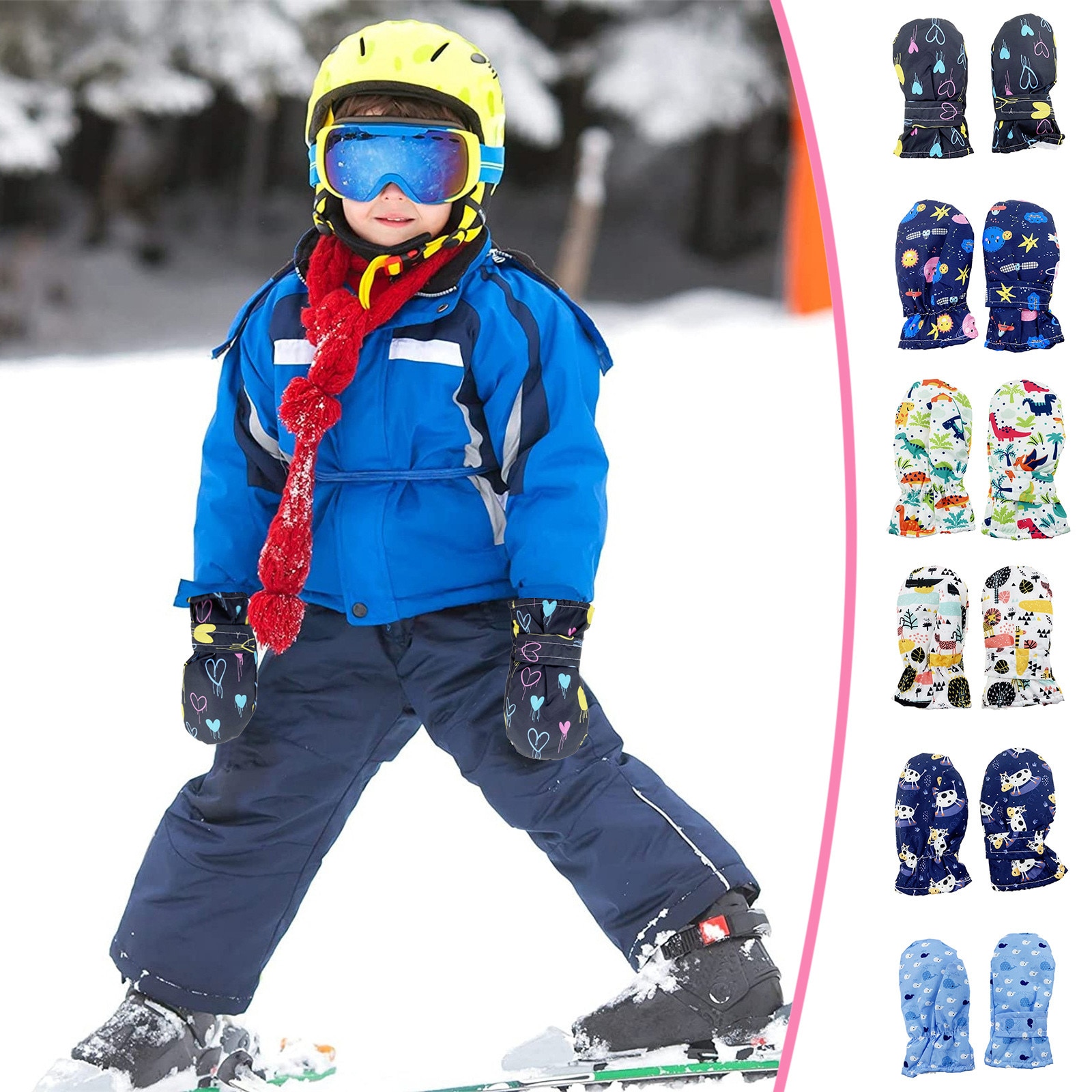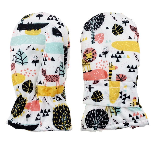 Варежки с рисунком, водонепроницаемые перчатки для катания на лыжах, Зимние перчатки для малышей, детские зимние перчатки