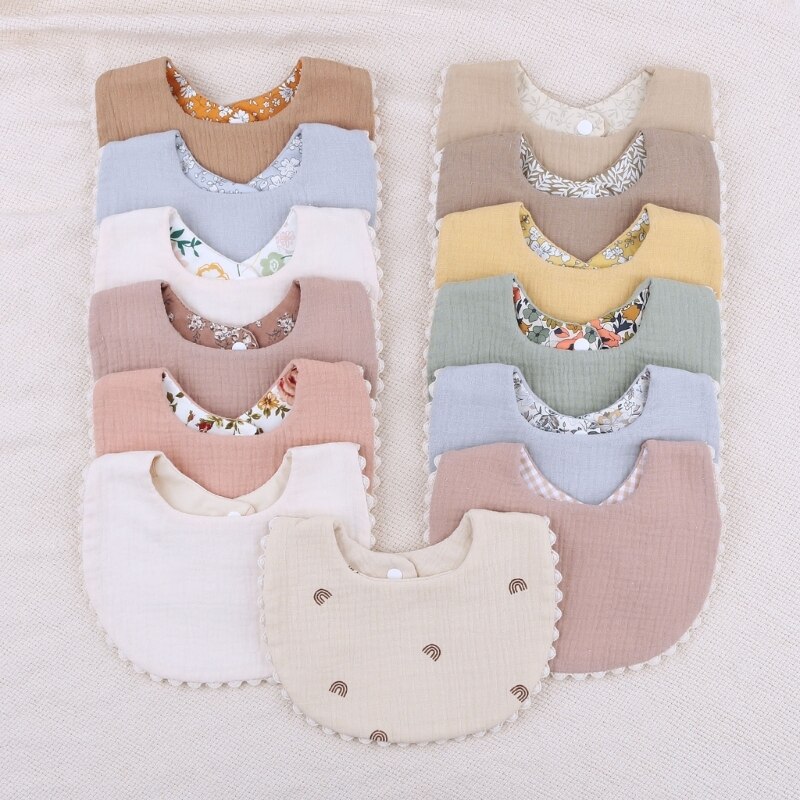 Детские двухсторонние нагрудники: хлопковый нагрудник, разработанный с двух сторон, одна сторона с винтажным цветочным принтом и обратная сторона с однотонным цветом, удобный и нейтральный пол может легко подойти для ребенка другой наряд, дышащий материал сохраняет грудь, лицо и шею вашего ребенка сухими и комфортными.