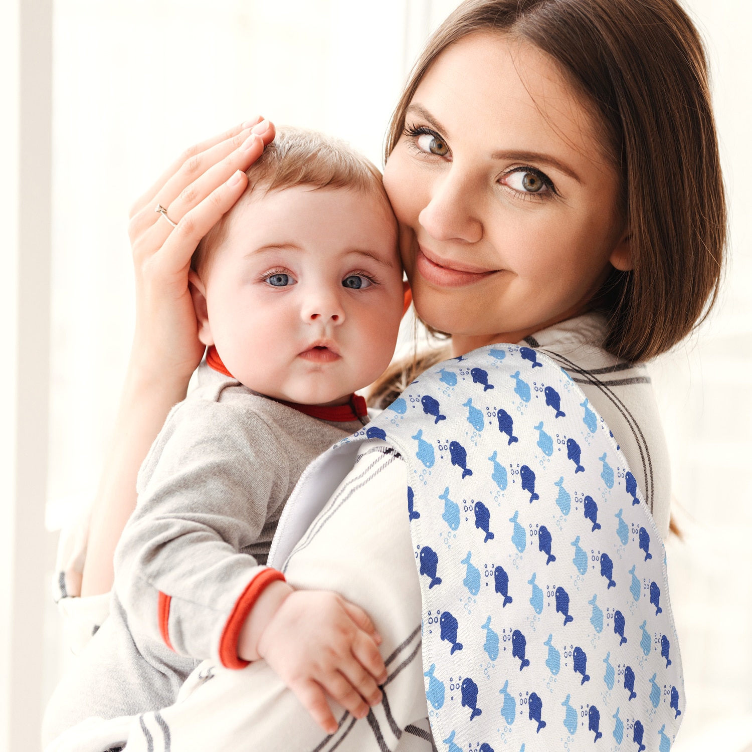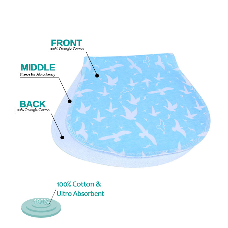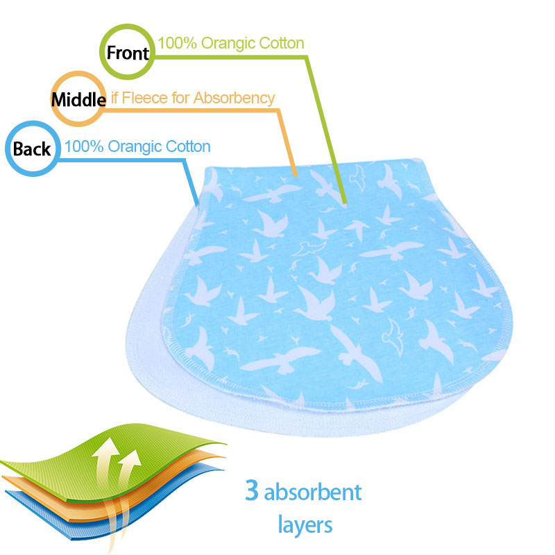 3. Ткань из 100% хлопка, с одной стороны яркая и милая печать различных типов, с другой стороны полотенце, как материал, но более тонкий, мягкий и абсорбирующий, поможет оставаться на плече, не скользит легко.