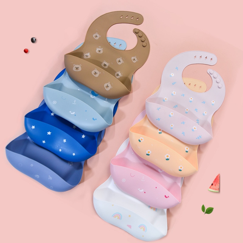 Детские нагрудники с мультяшными животными, водонепроницаемые Мягкие силиконовые нагрудники с принтом для кормления мальчиков и девочек, регулируемый детский нагрудник, фартук
