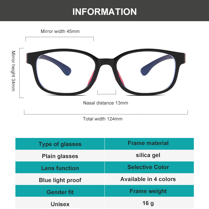 Наш детский фильтр синего света оснащен Сверхлегкой рамкой TR90, которая мягкая, симпатичная, прочная, долговечная и не устарит. Обеспечьте вашего ребенка очками с защитой от синего света черного, коричневого, розового, голубого и других цветов.