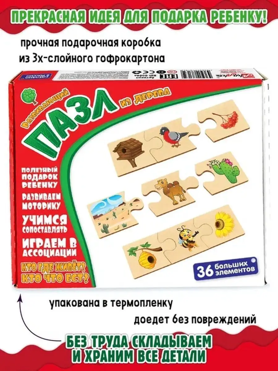 Детские пазлы Кто что ест где живет 2 3 4 5 лет