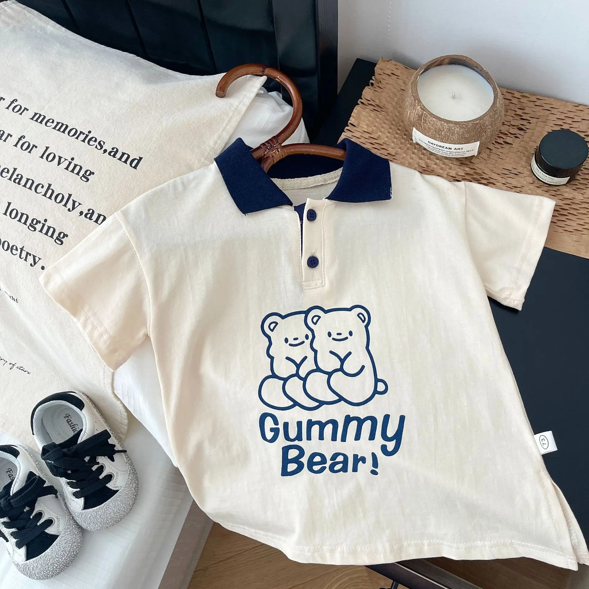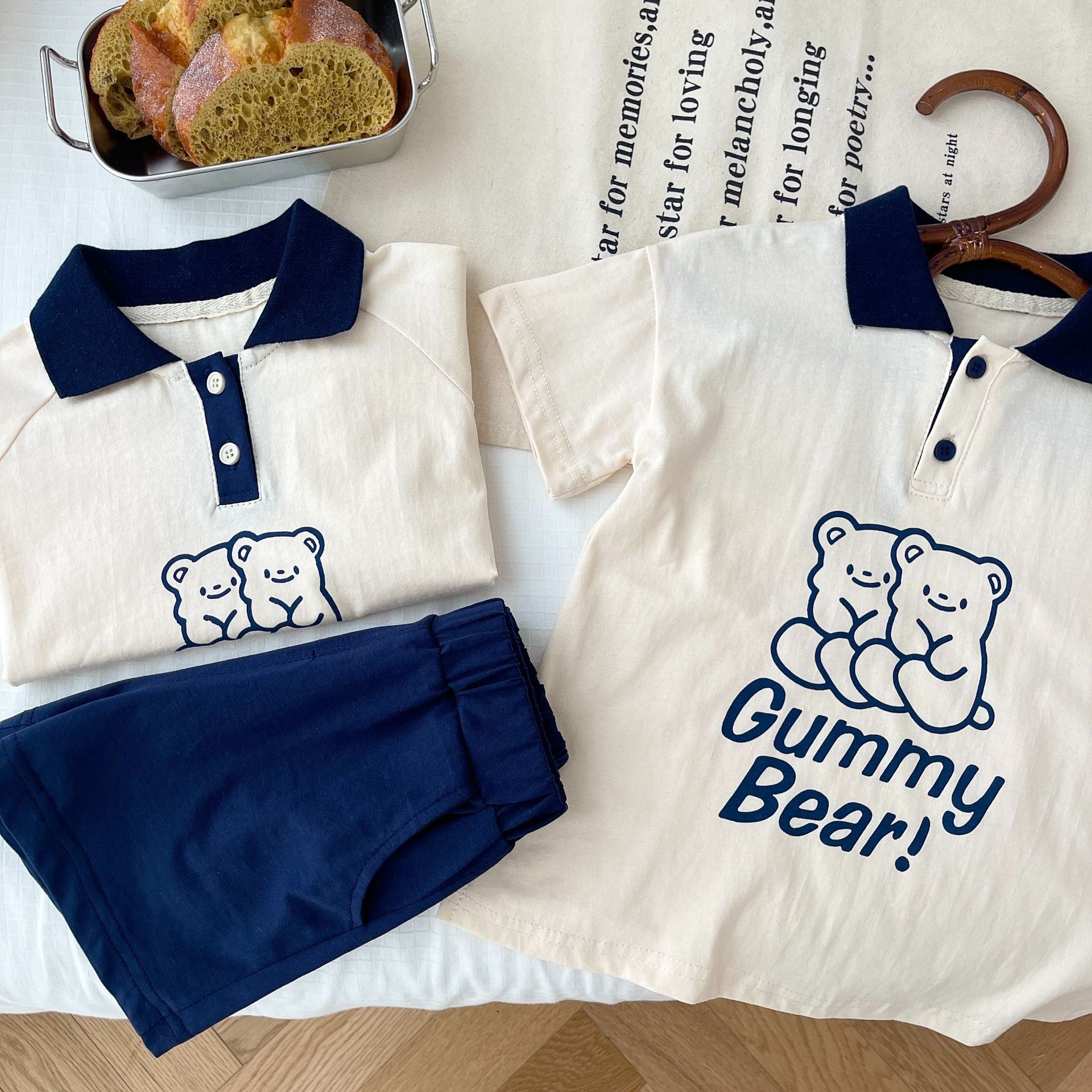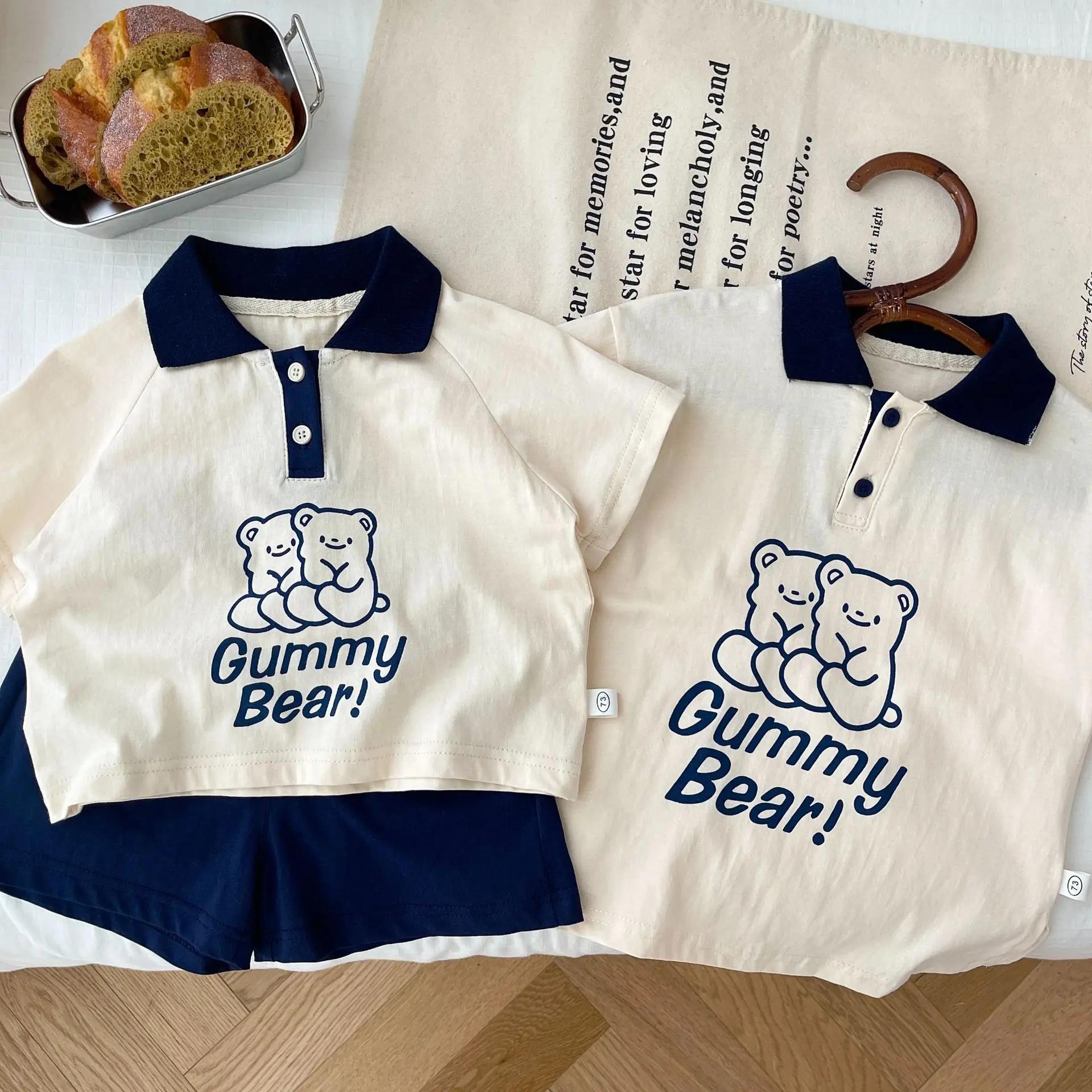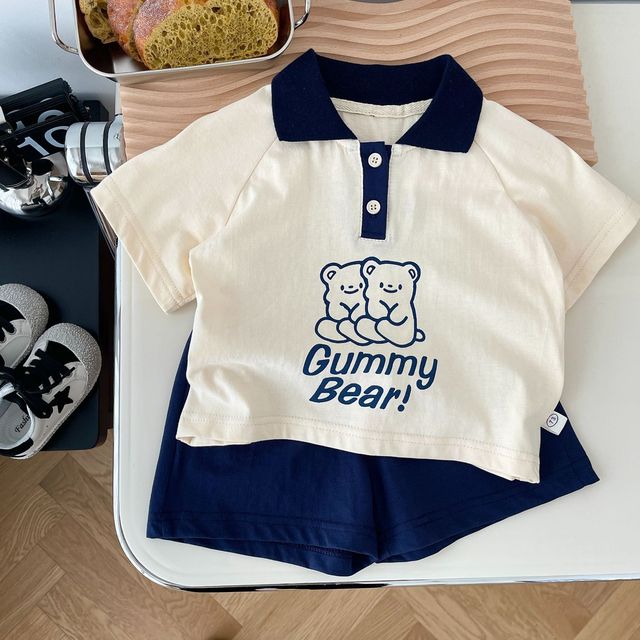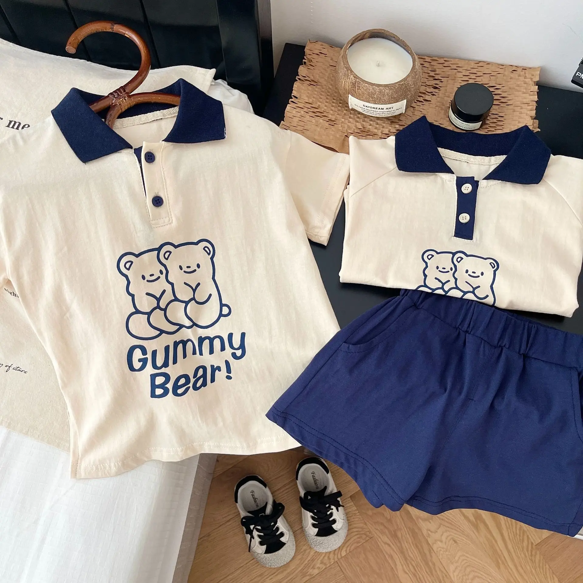 Детские повседневные комплекты Brother and sister, рубашка-поло и шорты с медведем для маленьких мальчиков и девочек, комплекты из двух предметов