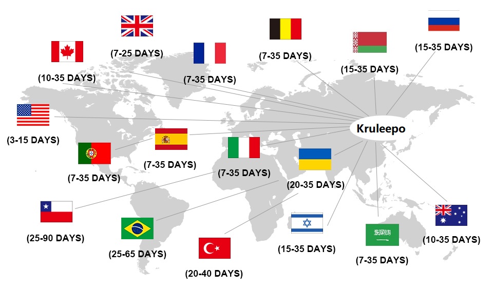 (1) От 8 до 20 рабочих дней в: Австралию, Канаду, Японию, Малайзию, Южную Корею, Сингапур, Великобританию, США;