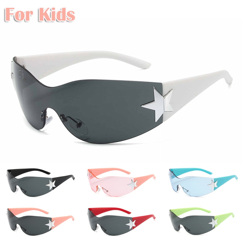 Детские роскошные солнцезащитные очки без оправы в стиле панк, UV400, для мальчиков и девочек, Y2K, очки со звездами, солнцезащитные очки, модные очки для детей