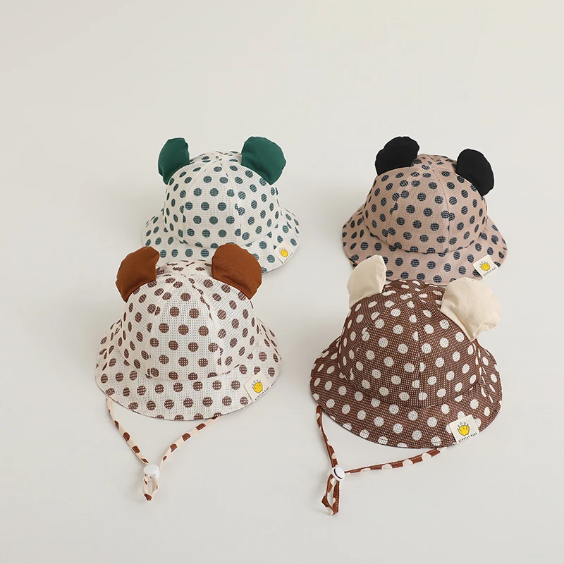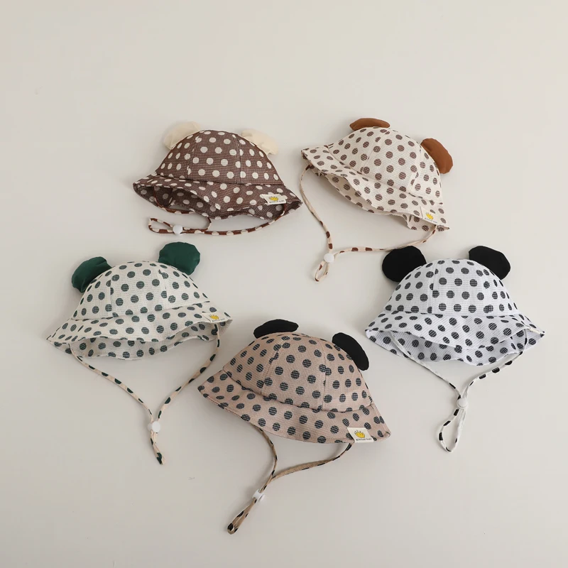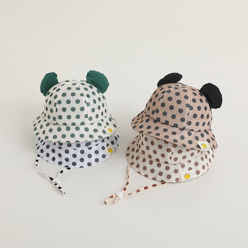 Детские сетчатые шляпы в рыбацком стиле, детская дышащая шляпа от солнца в горошек для мальчиков и девочек, летние детские Пляжные шапки