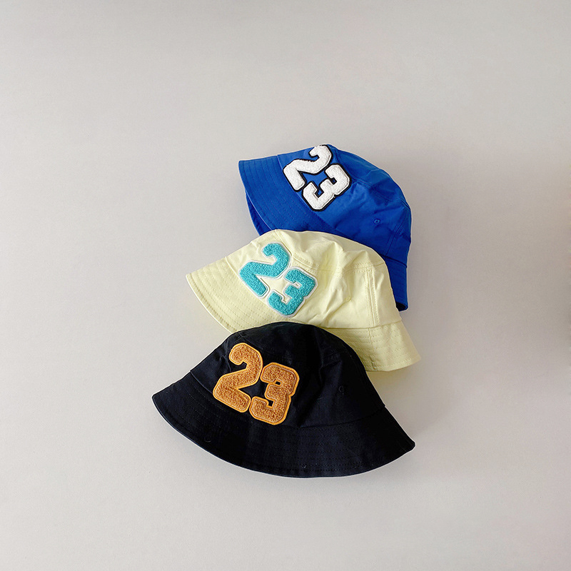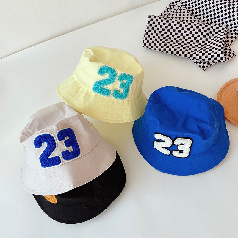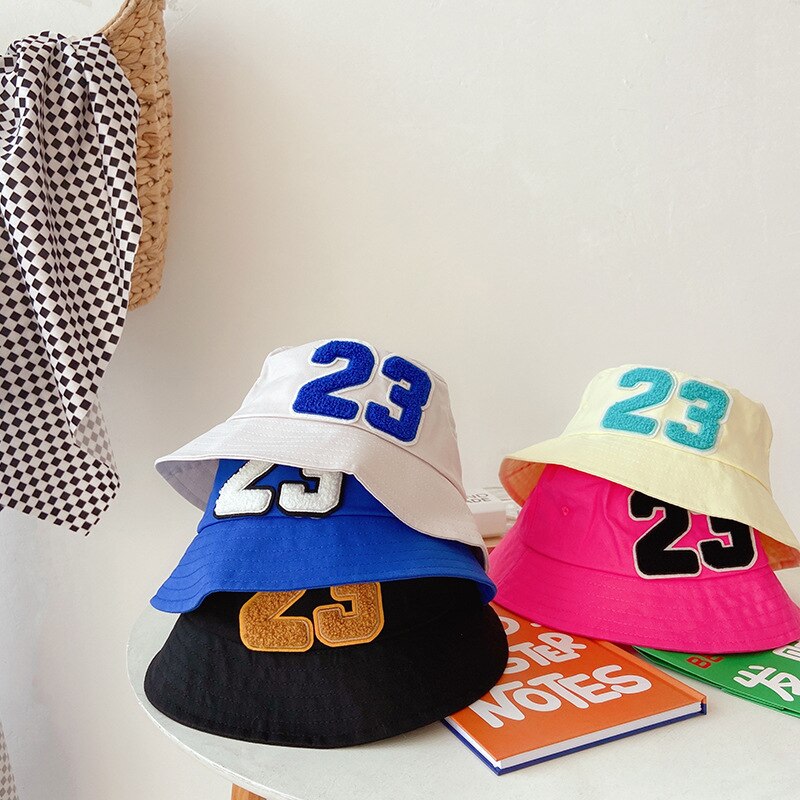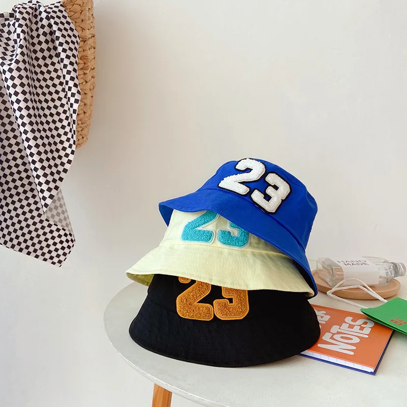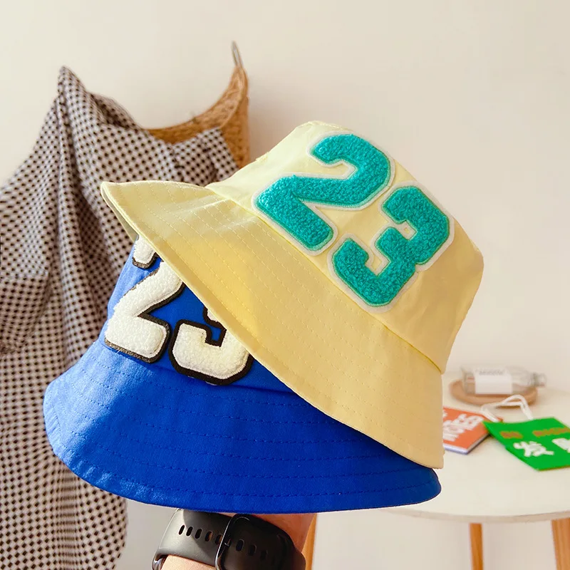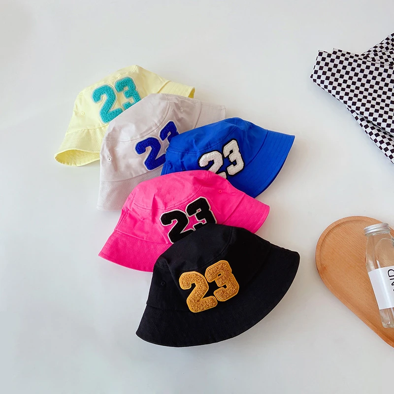 Детские шапки в рыбацком стиле, весенне-летние детские уличные солнцезащитные шапки для мальчиков и девочек, хлопковая Панама с цифровым 23 рисунком