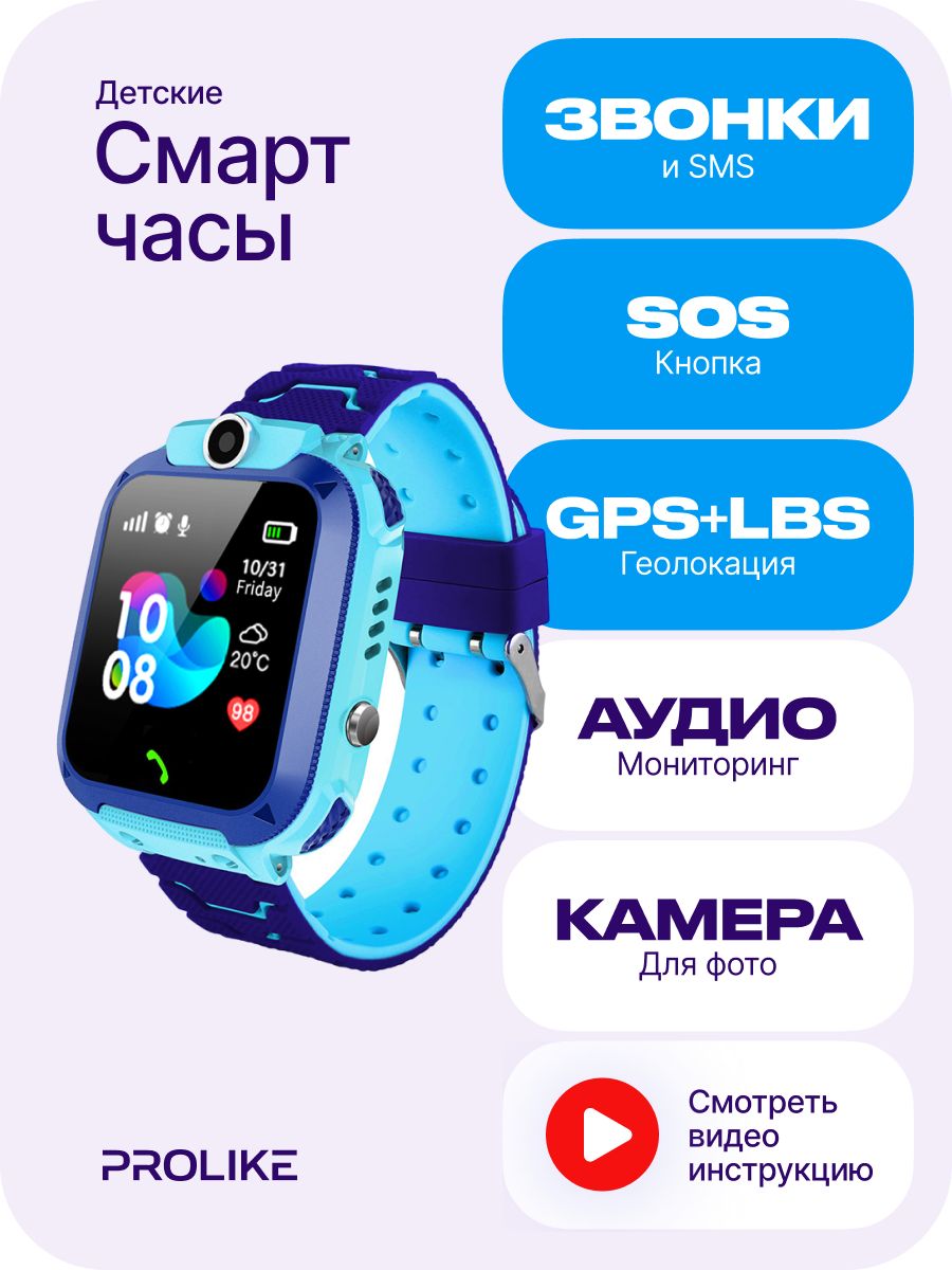 Детские смарт часы Prolike PLSW12BL с GPS, SIM картой и камерой, голубые
