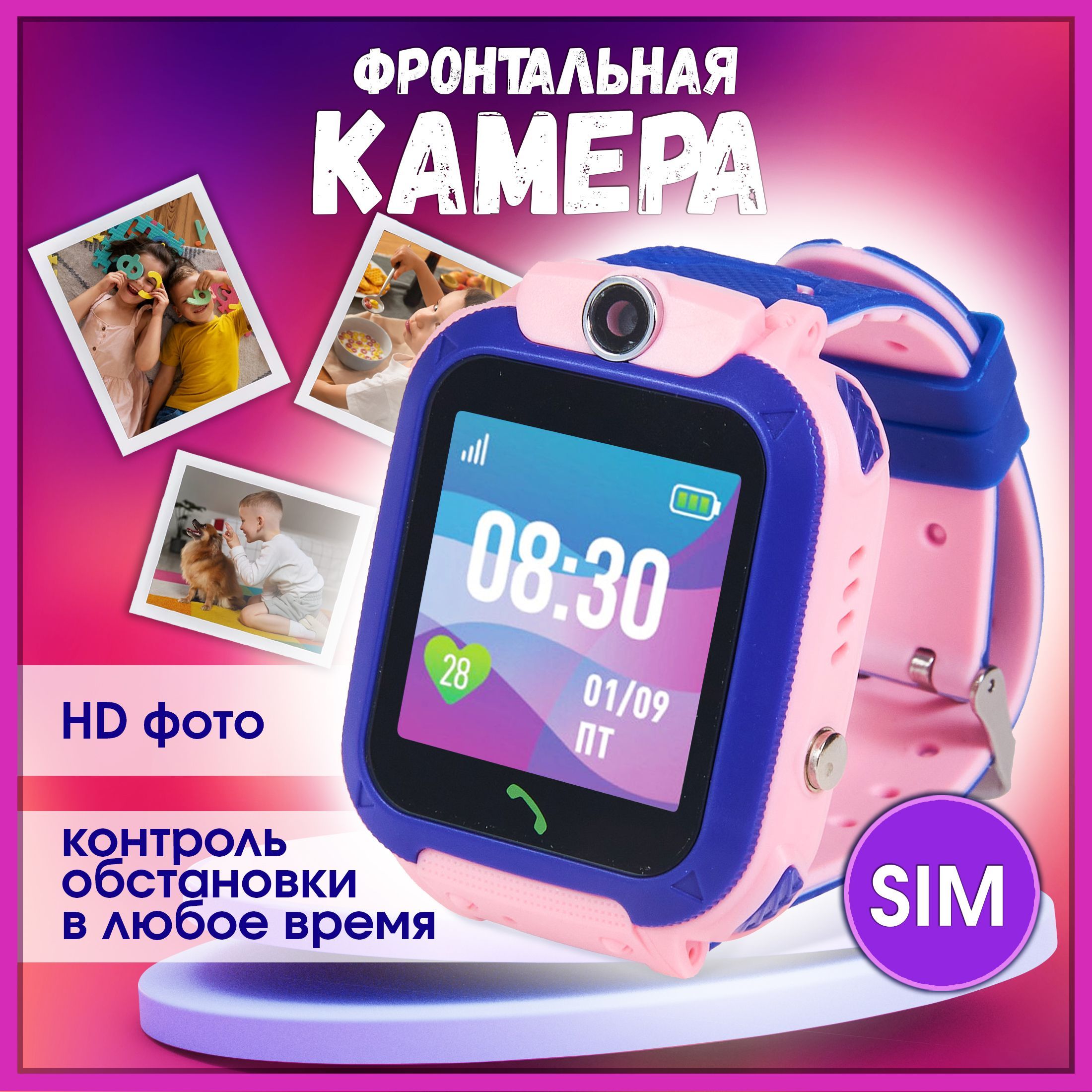 Детские смарт-часы с геолокацией, сим картой , звонками и голососовыми сообщениями , водонепроницаемые, с магнитной зарядкой и экраном 1,57, розовые