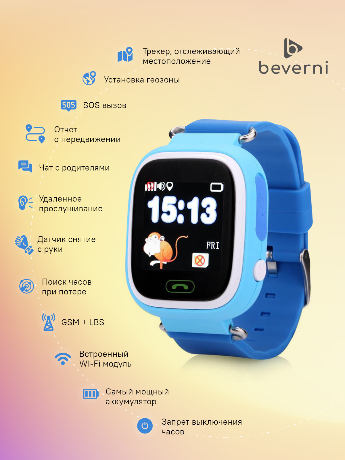 Детские смарт часы Smart Watch Beverni G72 / GPS, Wi-Fi, функция SOS, геолокация, камера, SIM (голубой)
